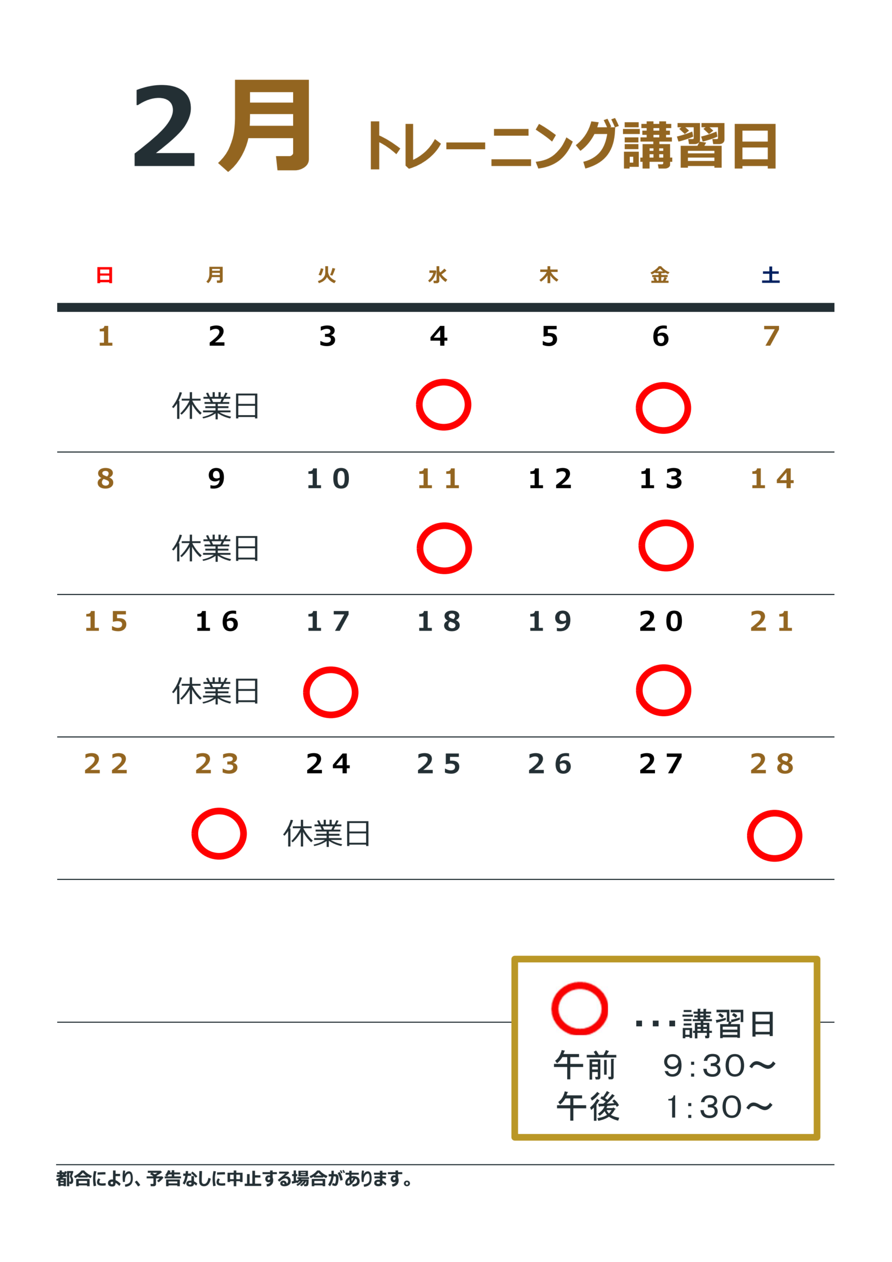 2月のトレーニング講習日