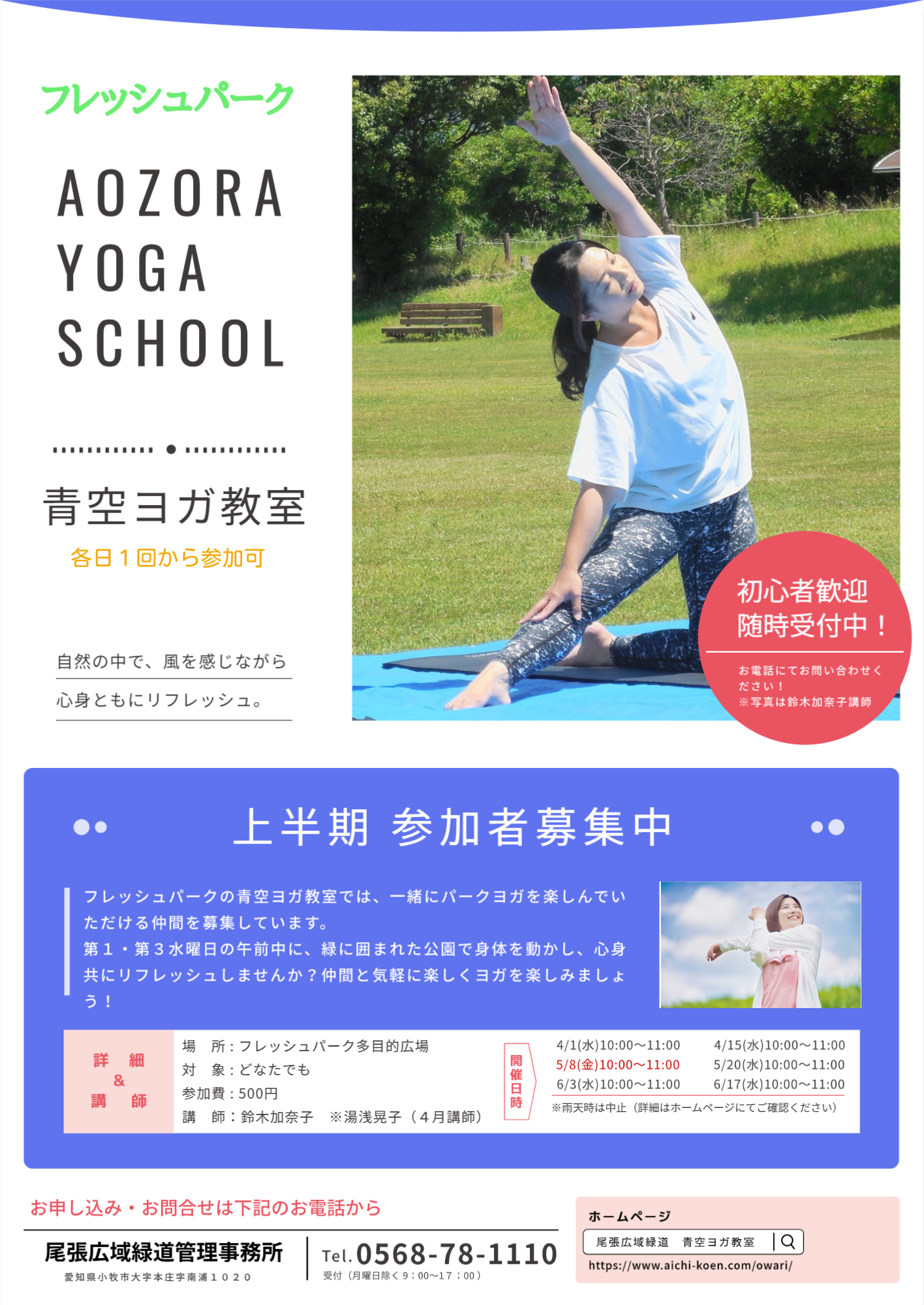 フレッシュパークのヨガ教室は公園の自然の中で、風を感じながら心身ともにリフレッシュすることを目的としています。