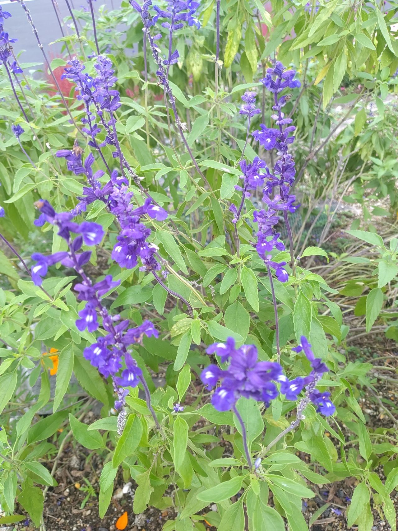 サトラボ入口の花壇で「サルビア」が咲いています。