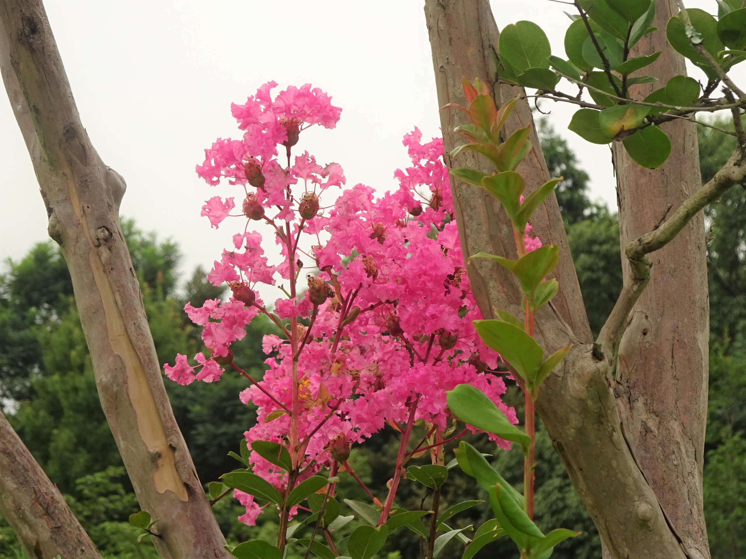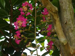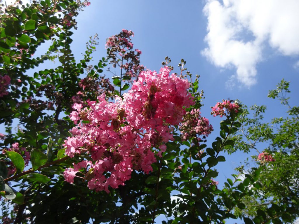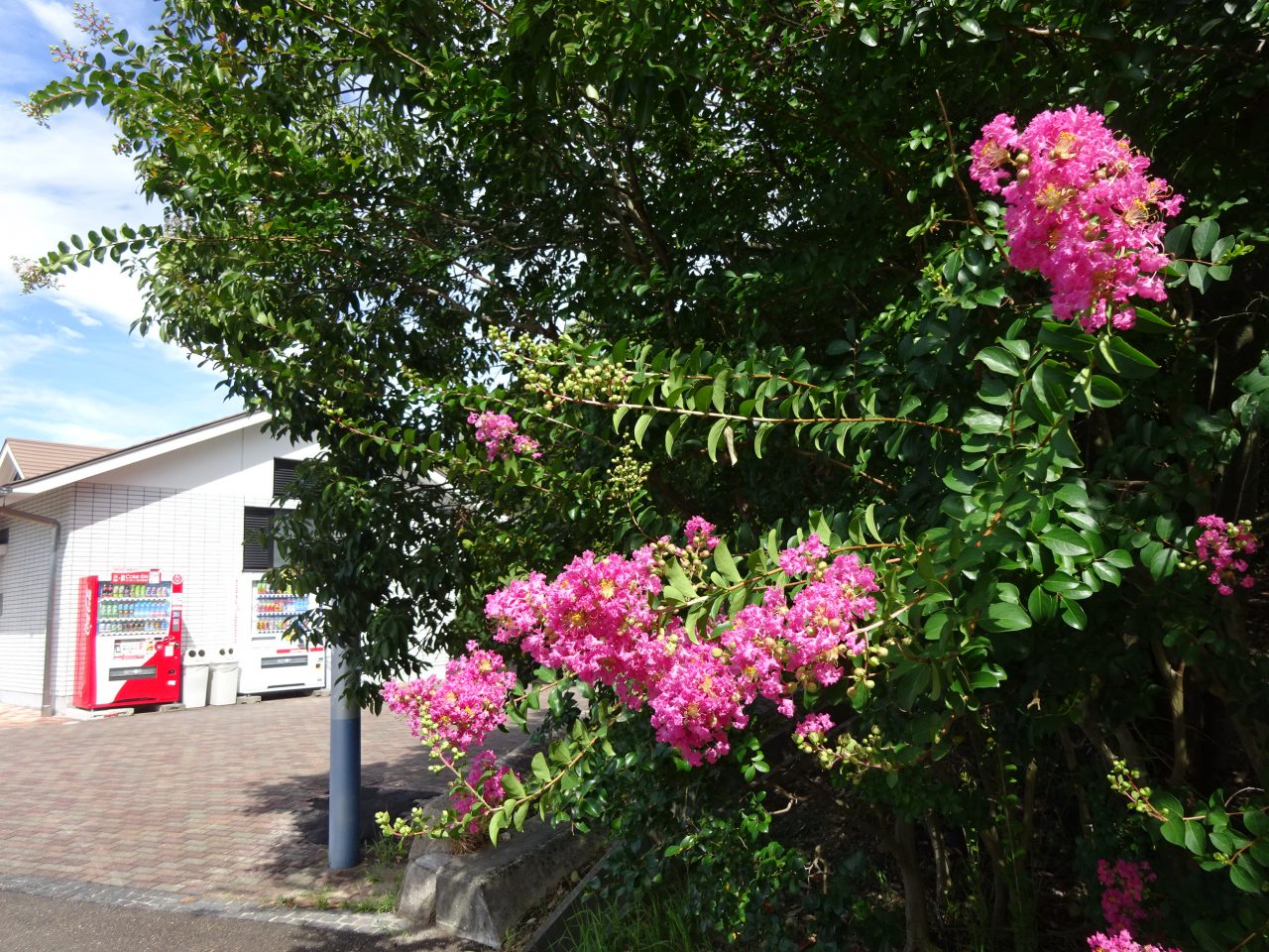 花の少ないこの季節、ひときわ鮮やかにサルスベリが花を咲かせています。