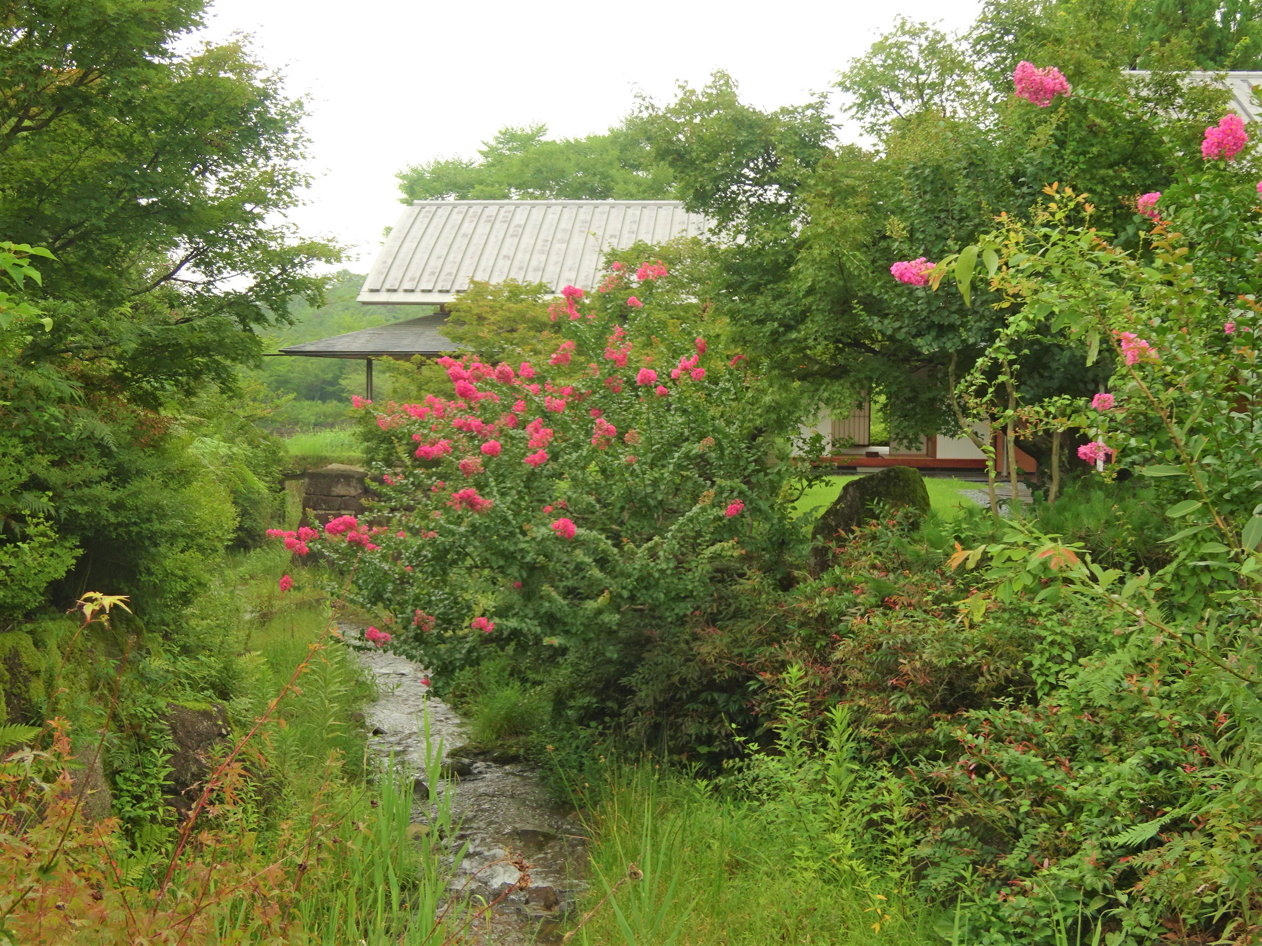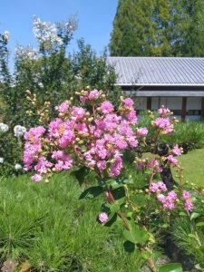 日本庭園の低木のサルスベリも花が咲き始めました。