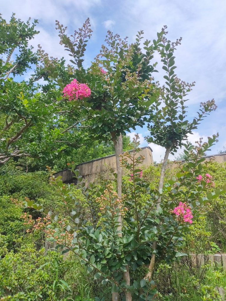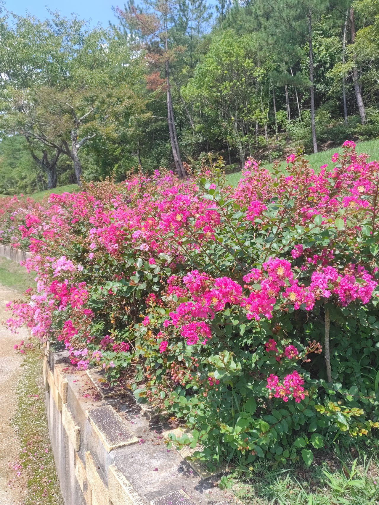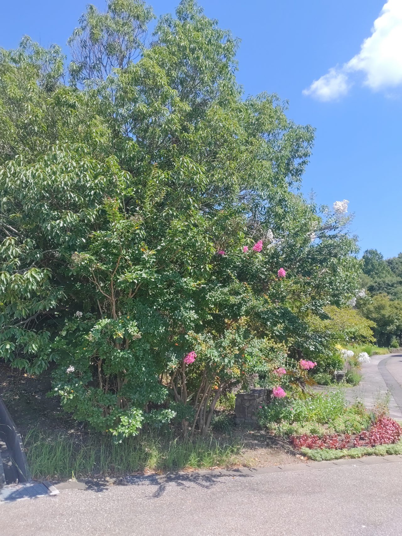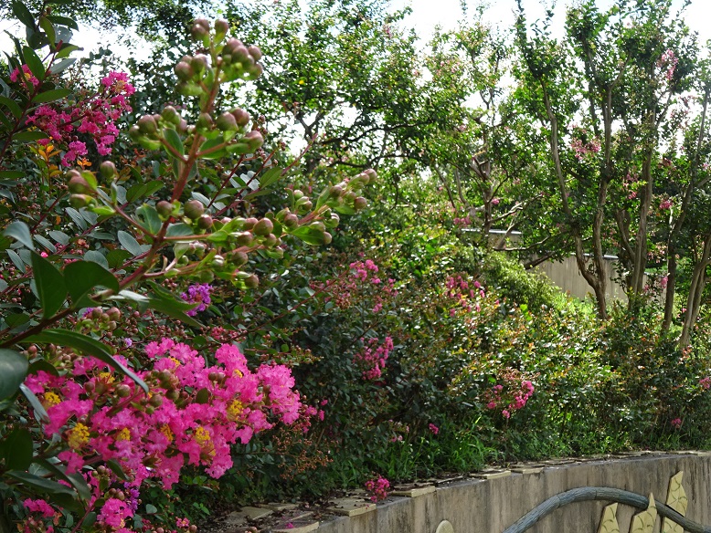 ピンク一色ではなく所々に紫色のサルスベリも混ざっていていい感じのアクセントとなっています。