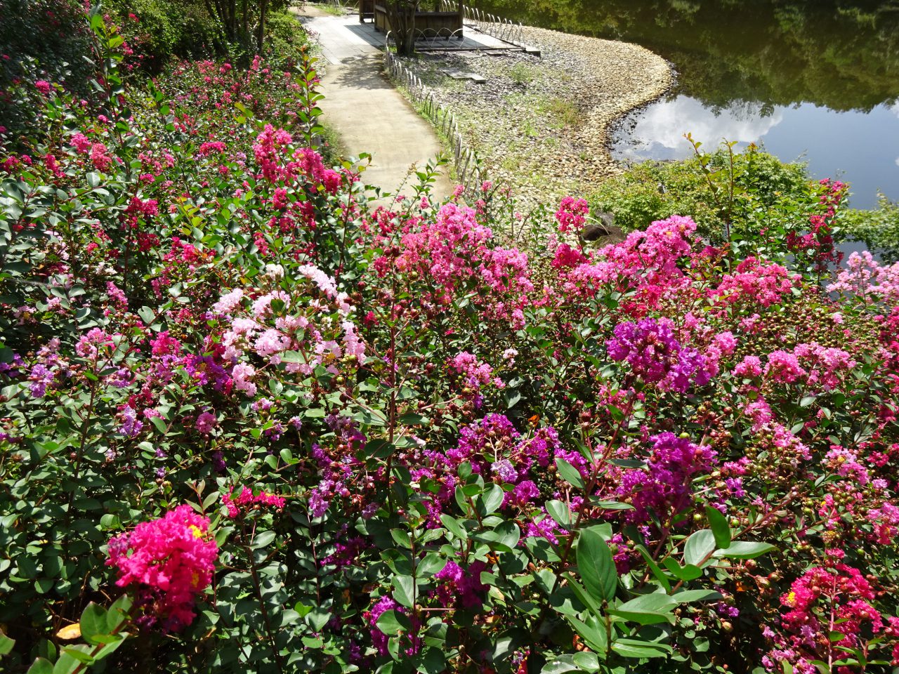 サルスベリが咲き誇っている道を歩きながらまったり過ごしてみるのはいかがでしょうか?
