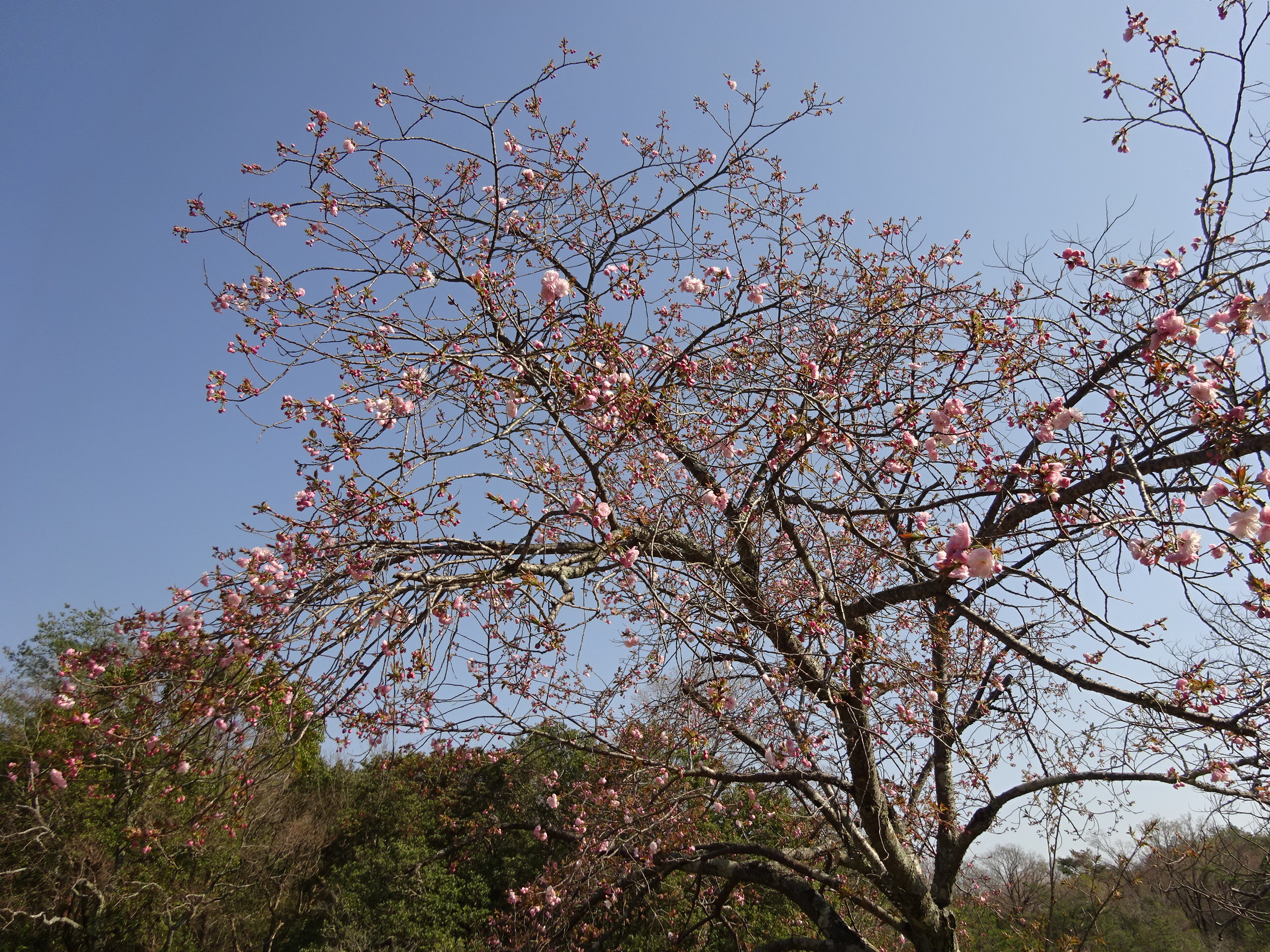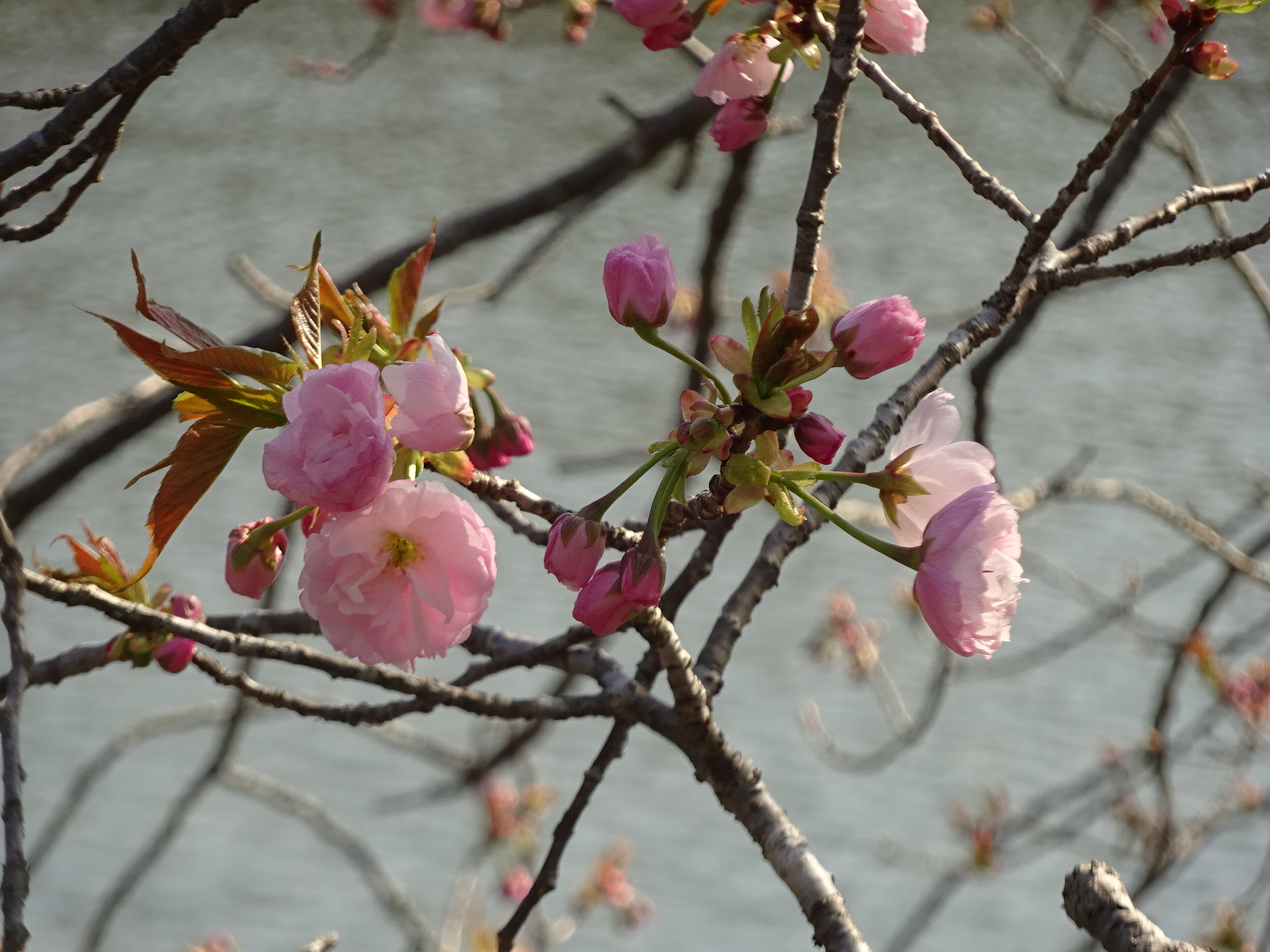 サトザクラの一種である「カンザン」はまだ咲き始め。