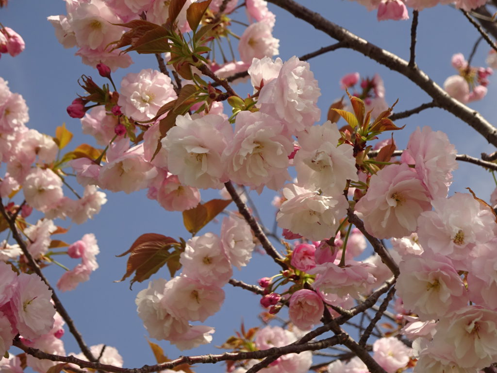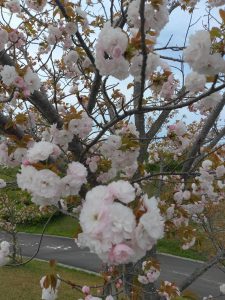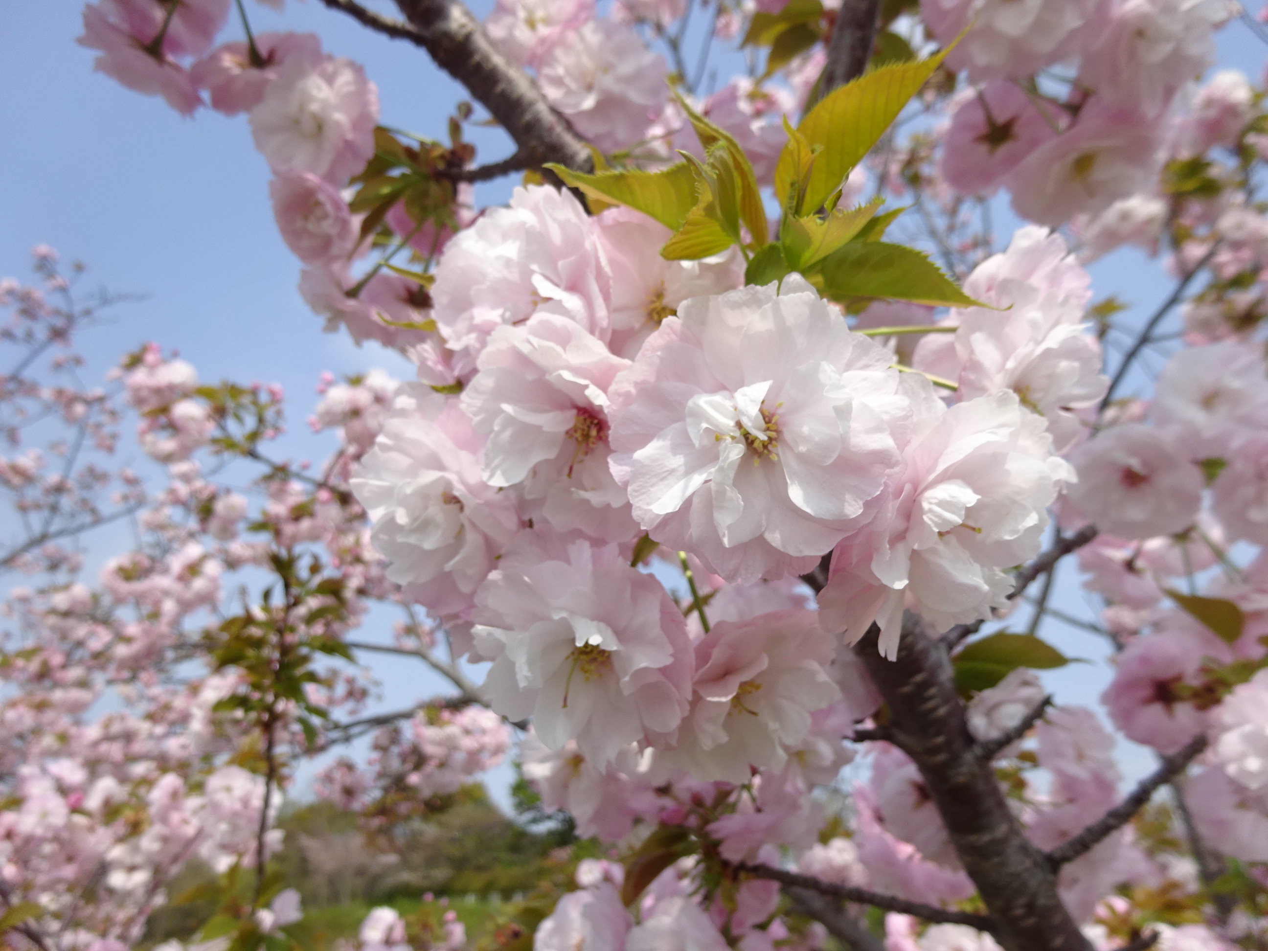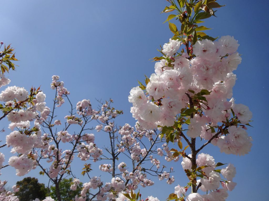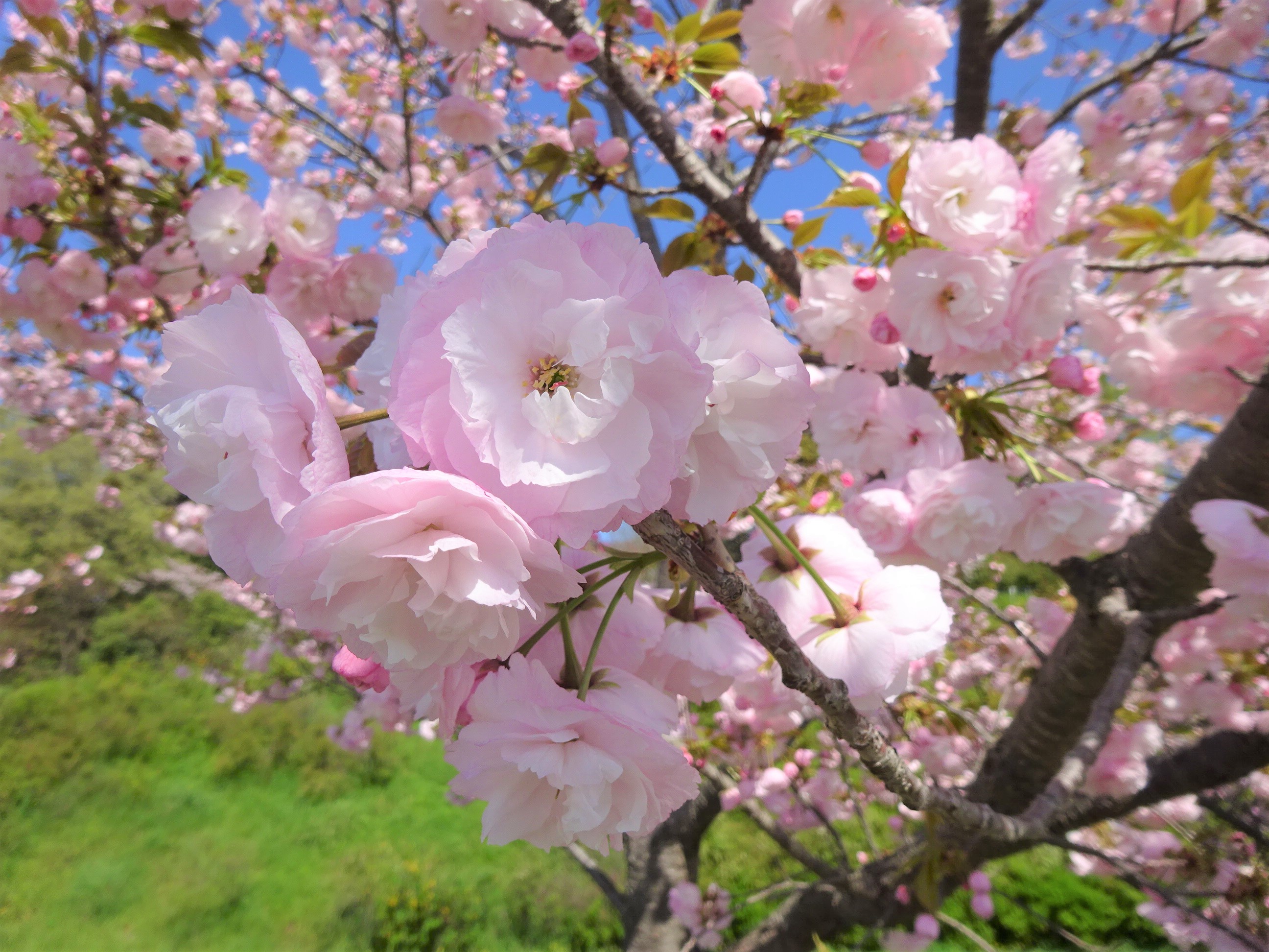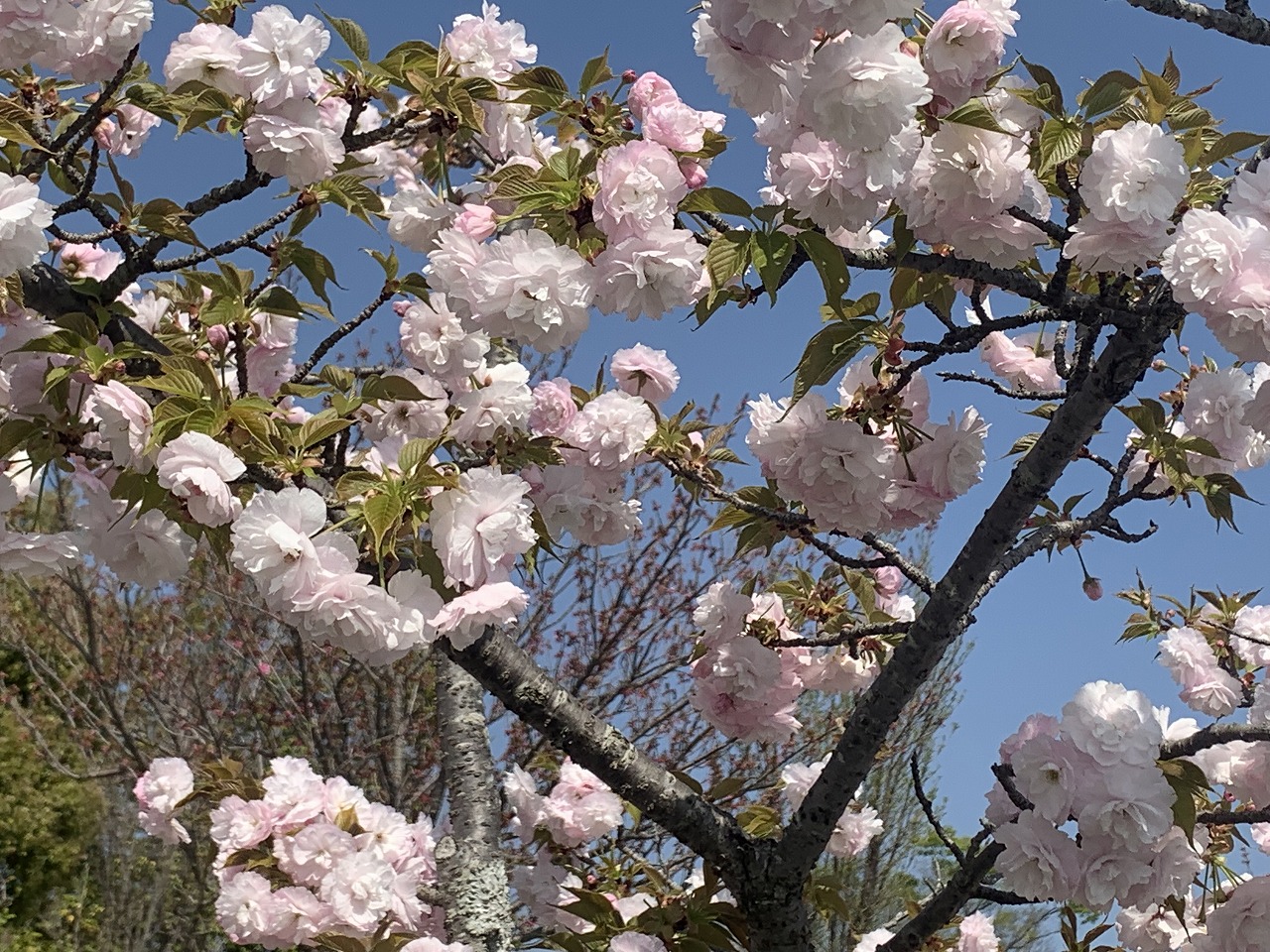 ほんのりピンクの八重桜、ソメイヨシノとはまた違った趣がありますね。