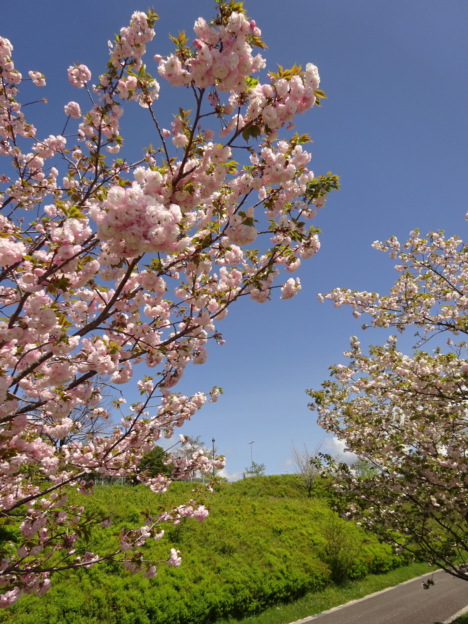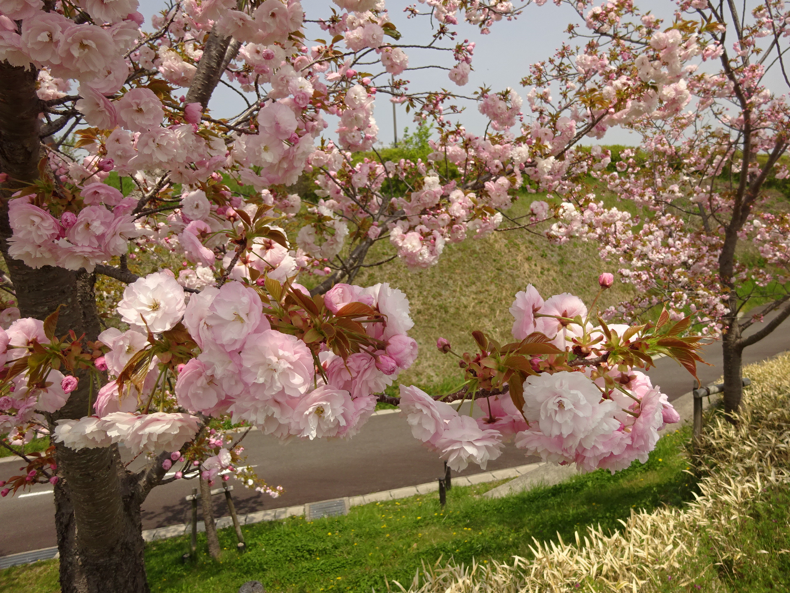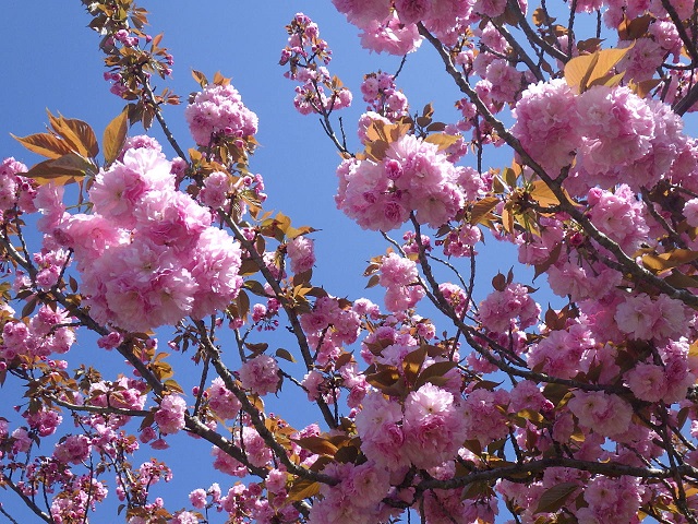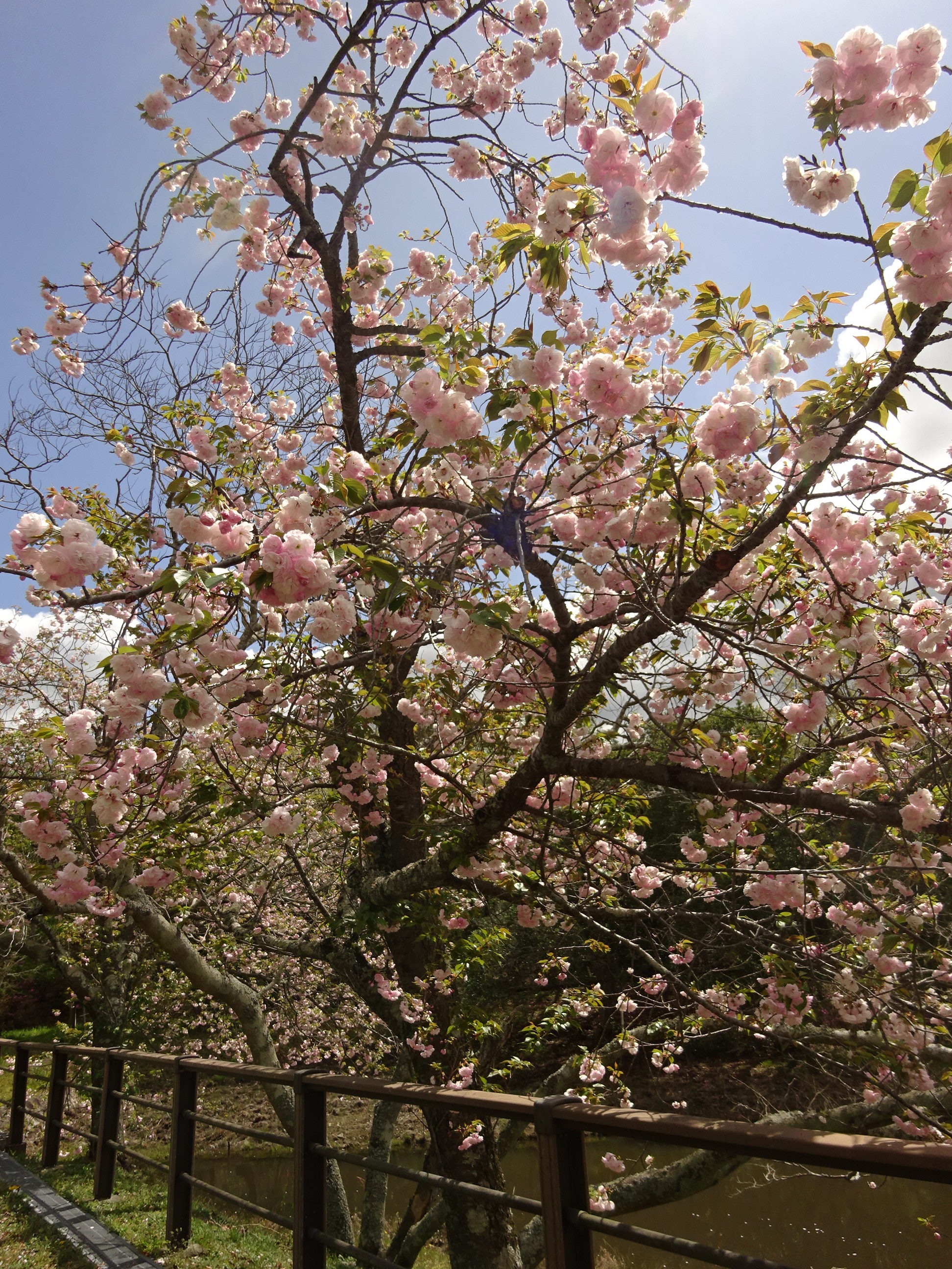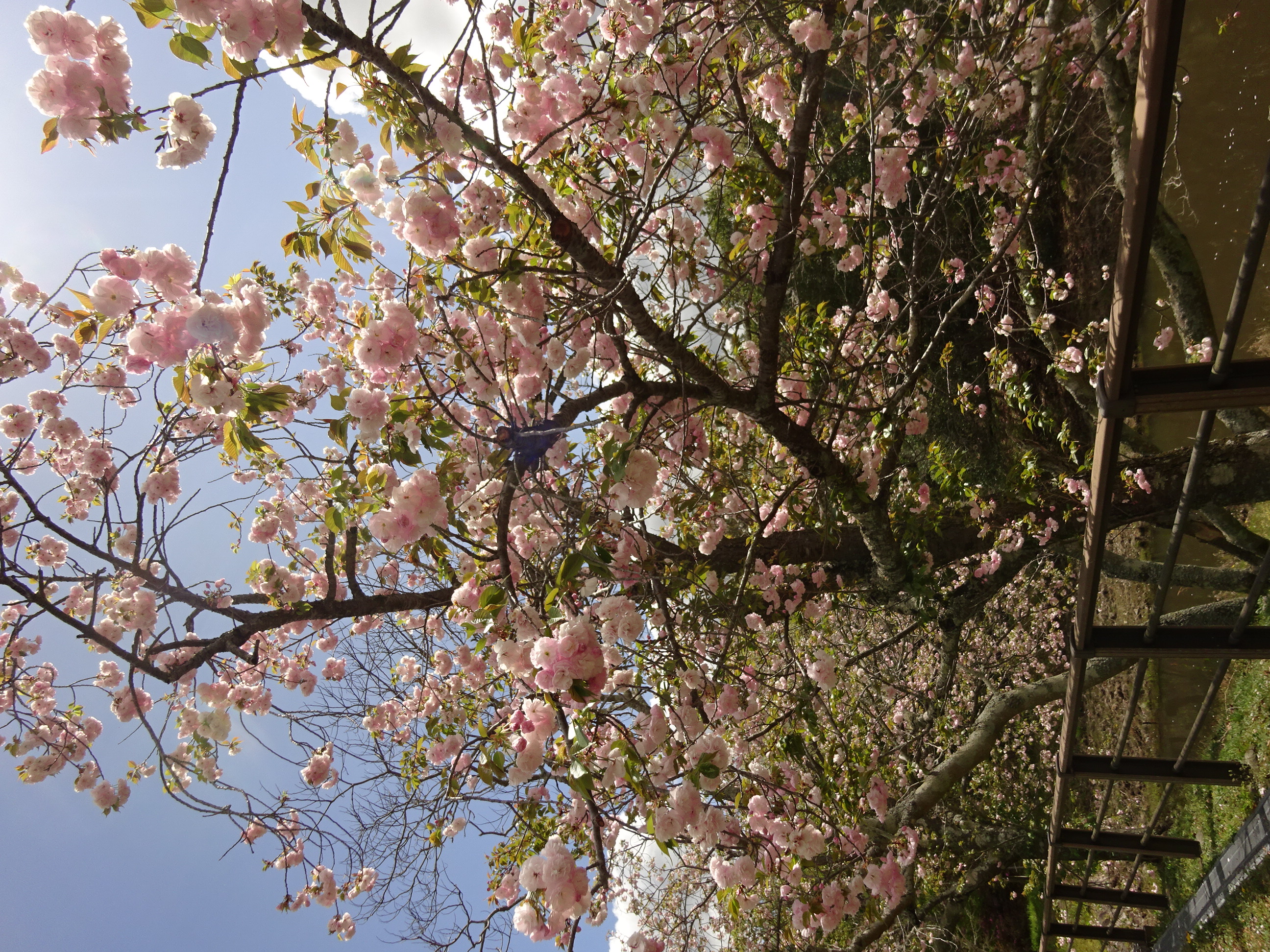 ほんのりピンクの八重桜、ソメイヨシノとはまた違った趣がありますね。