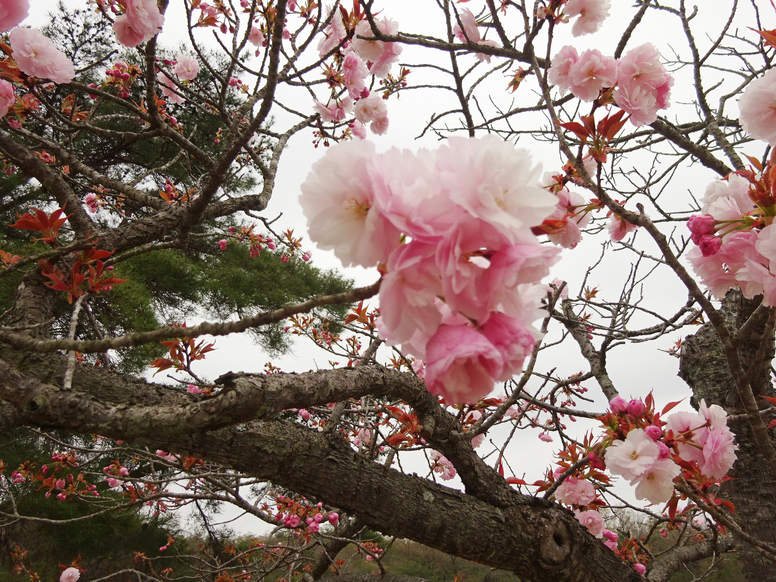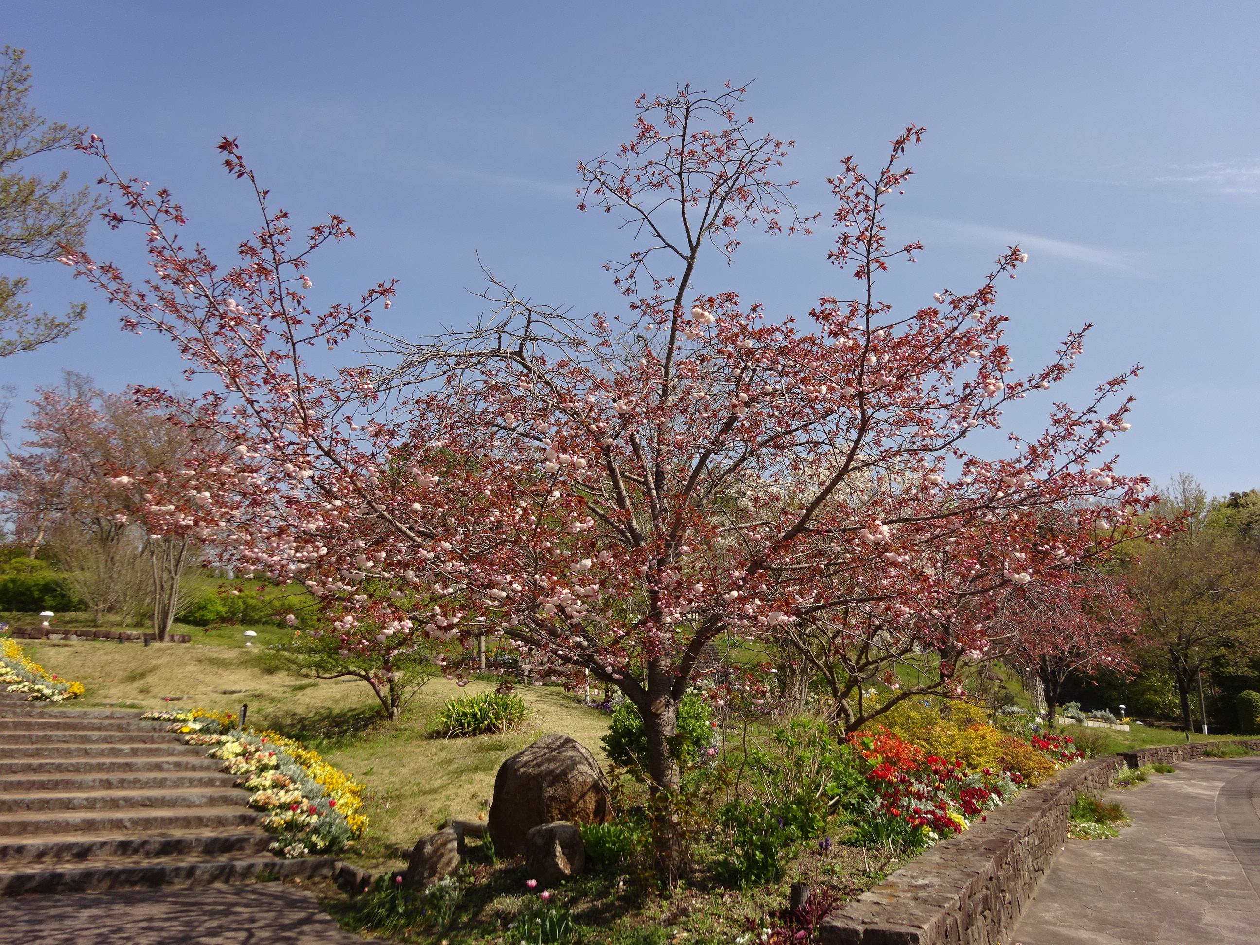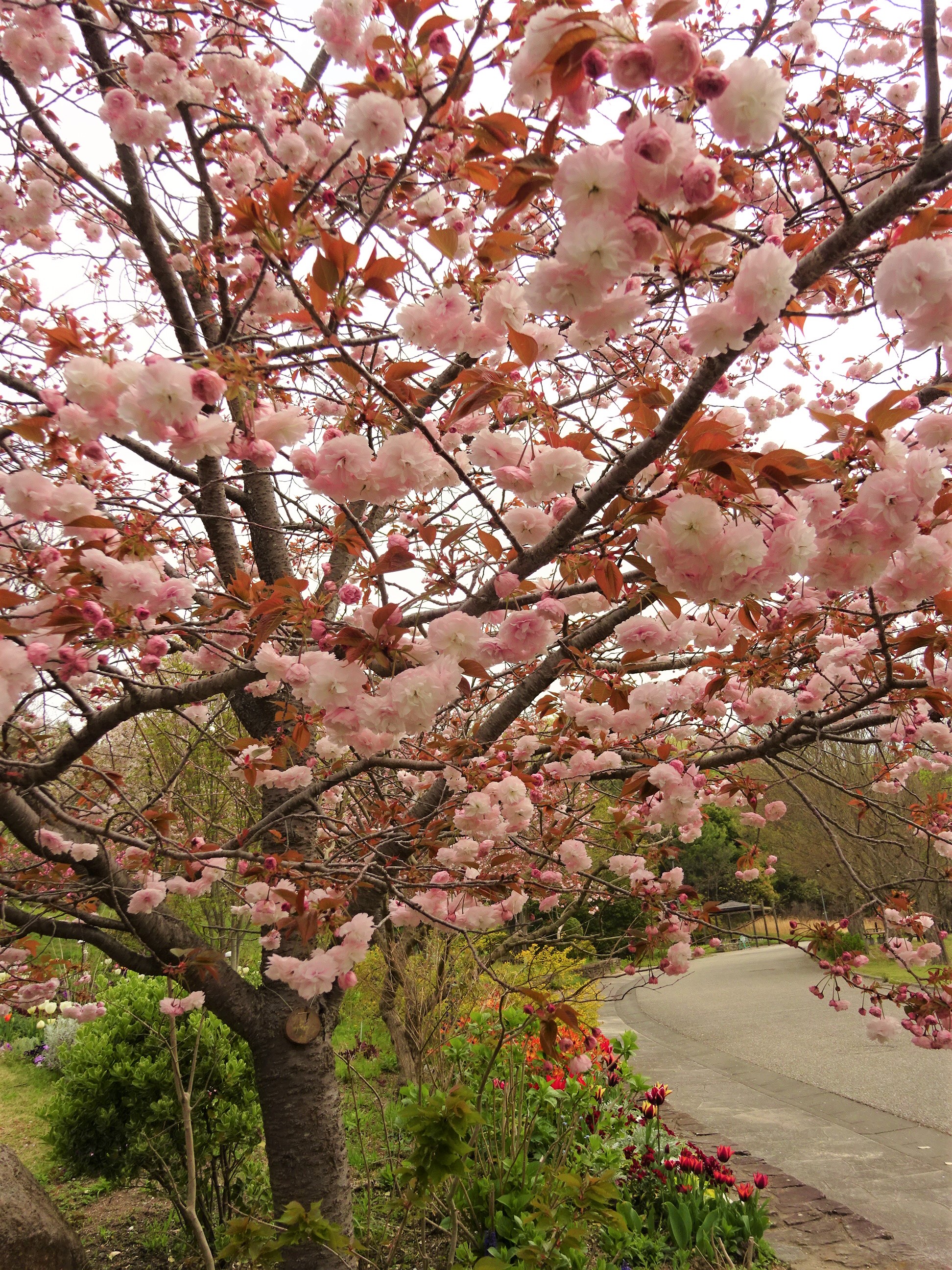 ソメイヨシノが散り終わった園内ではサトザクラが満開を迎えようとしています。