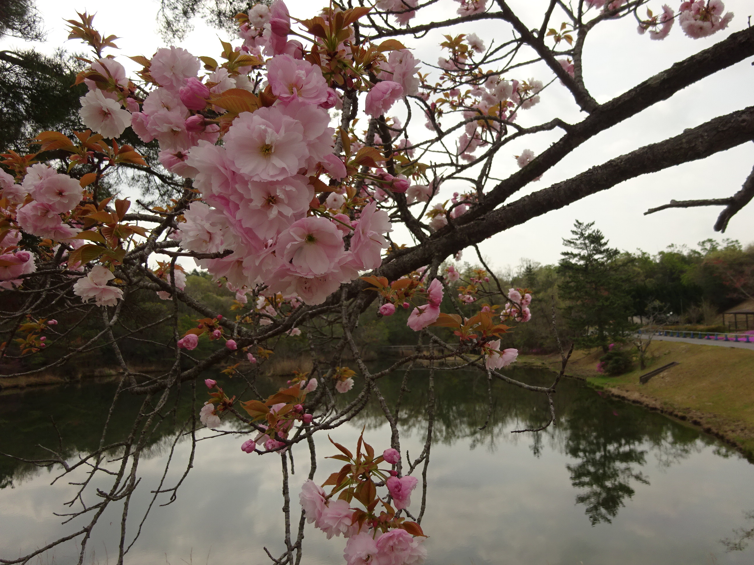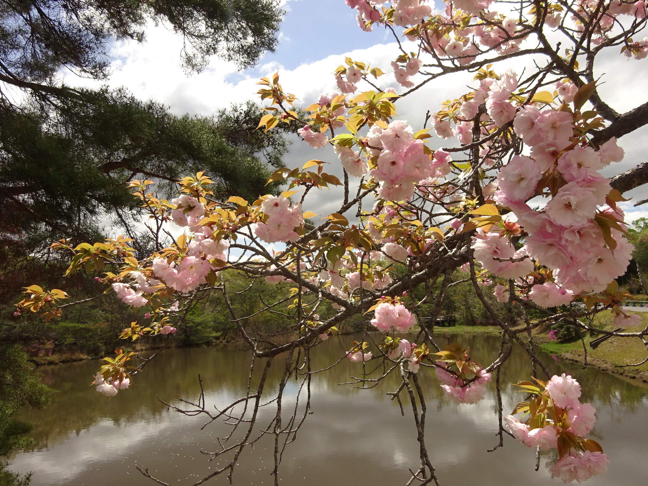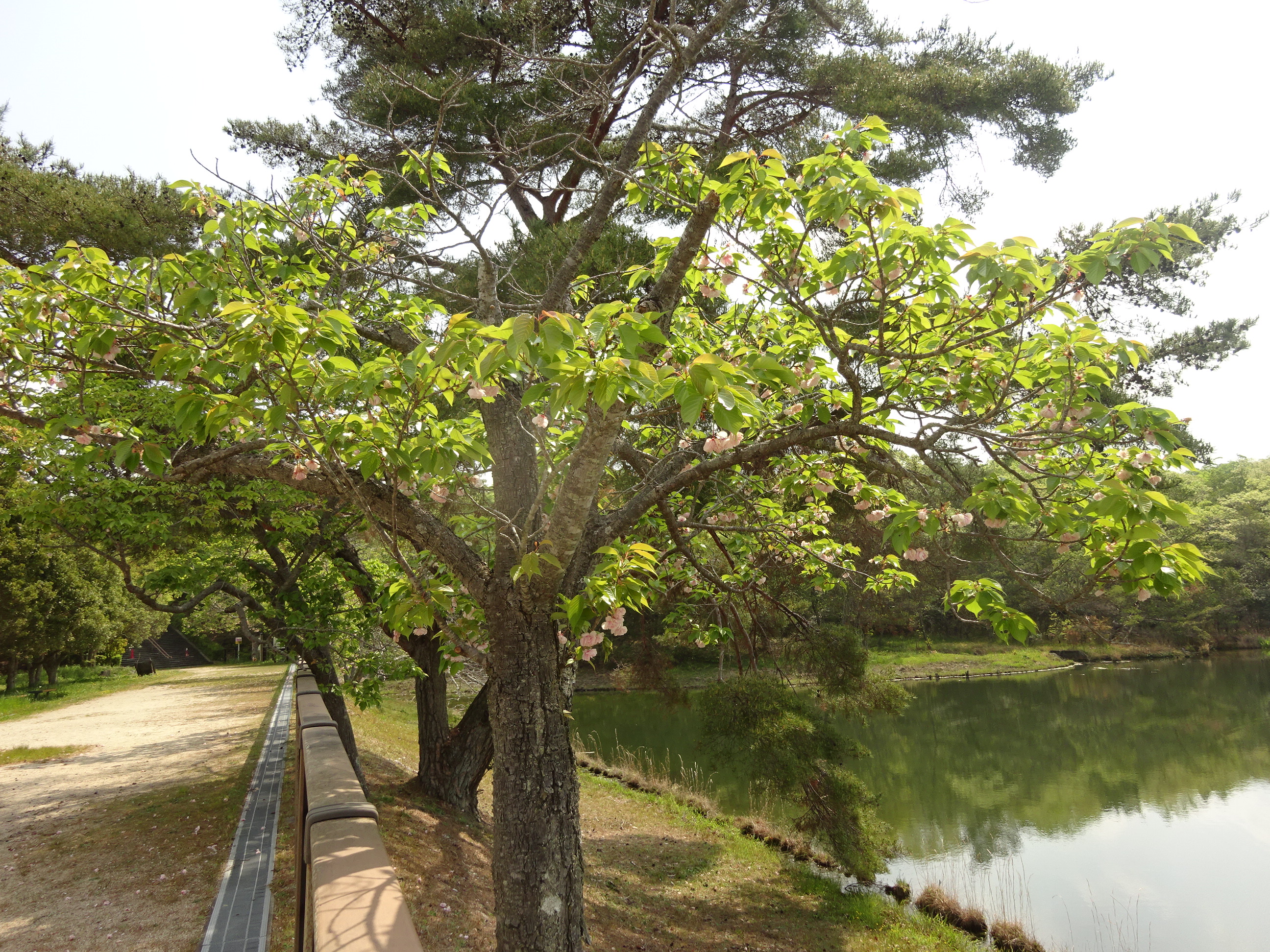 ソメイヨシノが散り終わった園内ではサトザクラが満開を迎えようとしています。