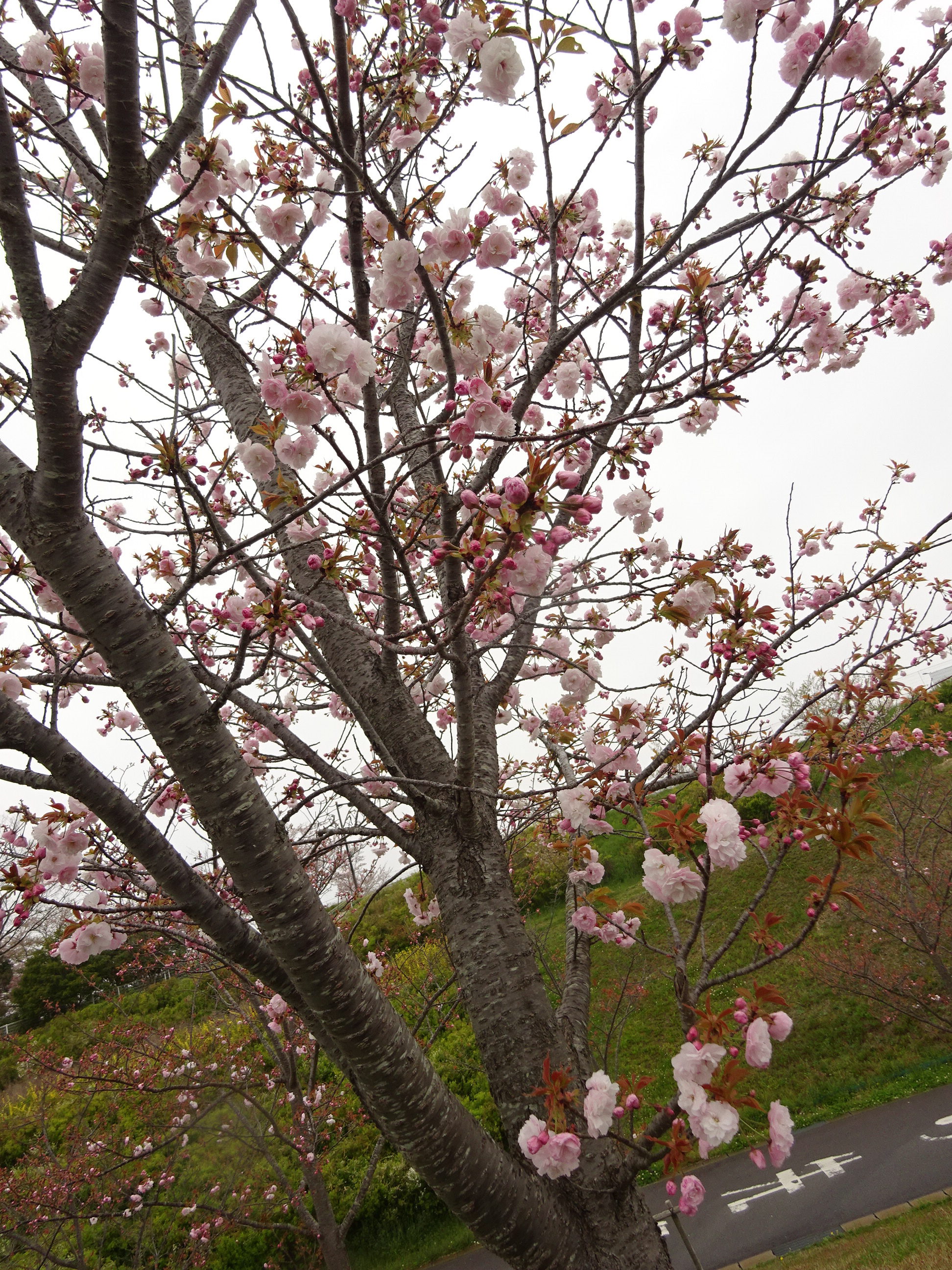 ソメイヨシノが散り始めたころ、出番を待っていたかのようにサトザクラが開花し始めました。