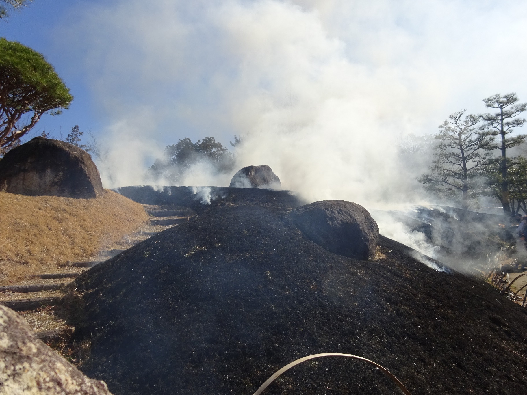 焼けた芝はこのまま肥料となります。