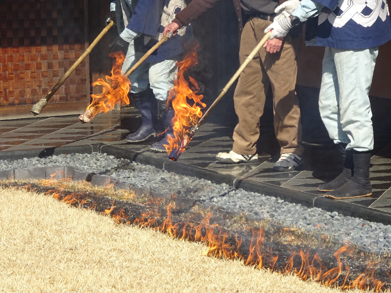 芝焼きとは名前のとおり、芝の表面に火をつけて燃やす行事です。