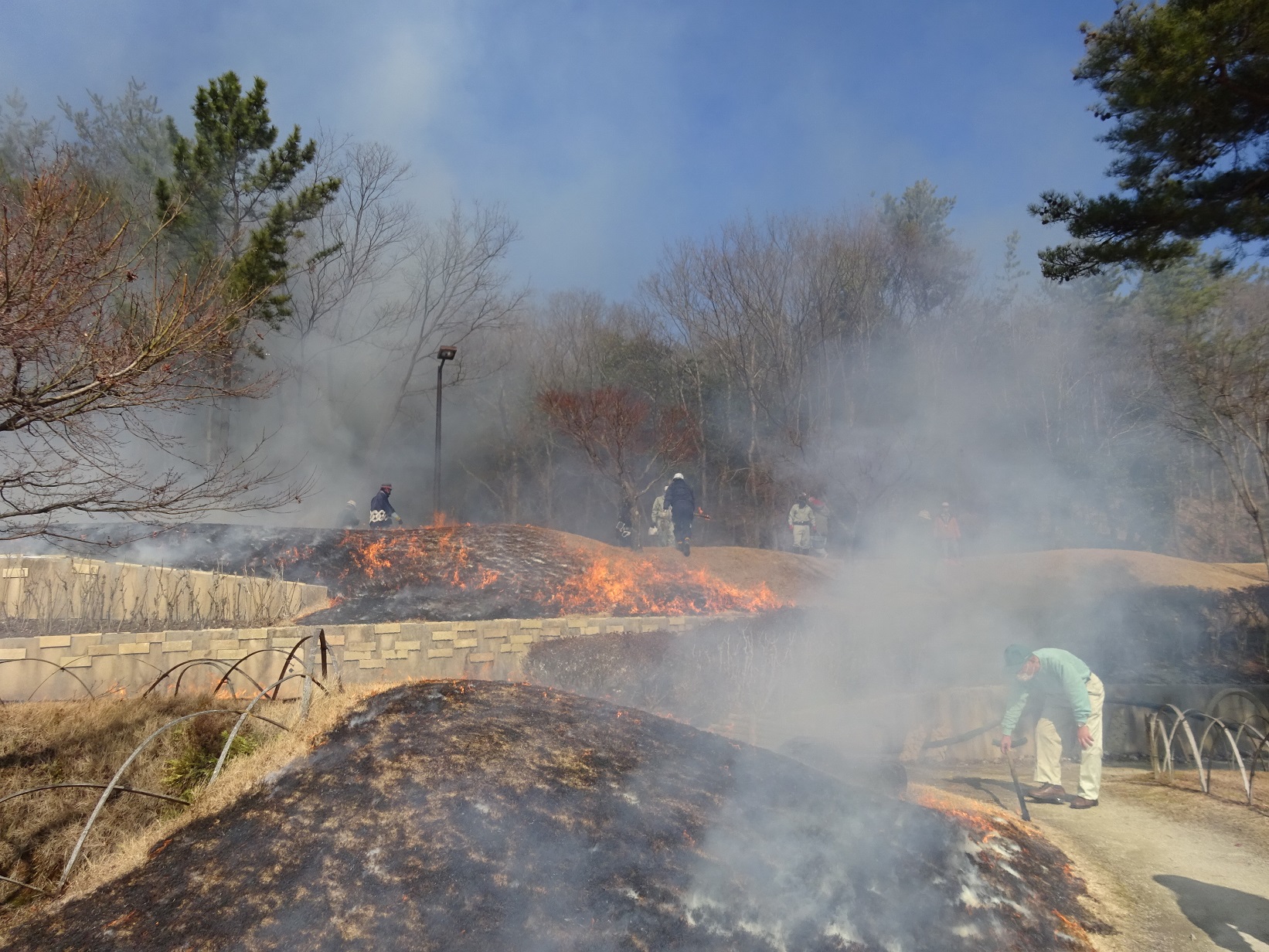 早春の風物詩『芝焼き』が行われました。