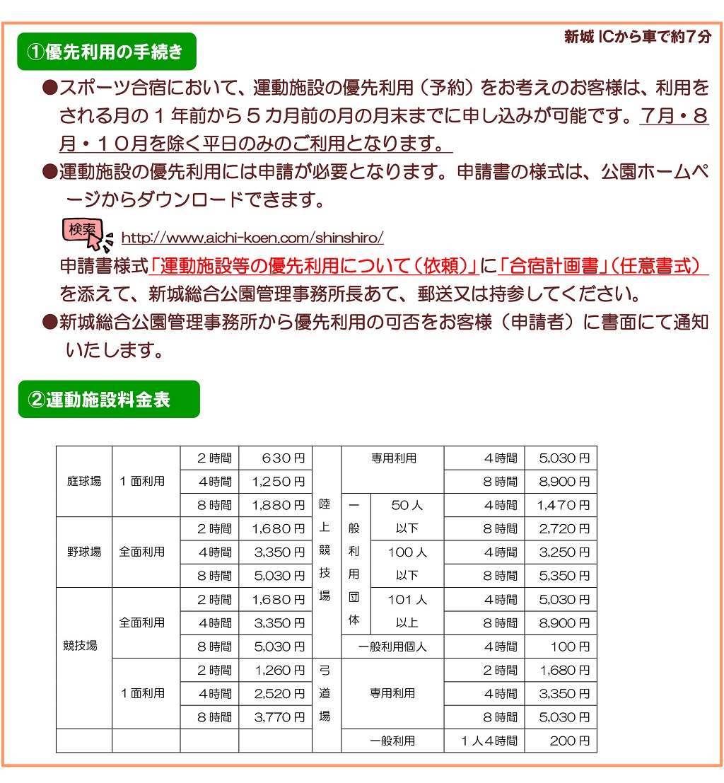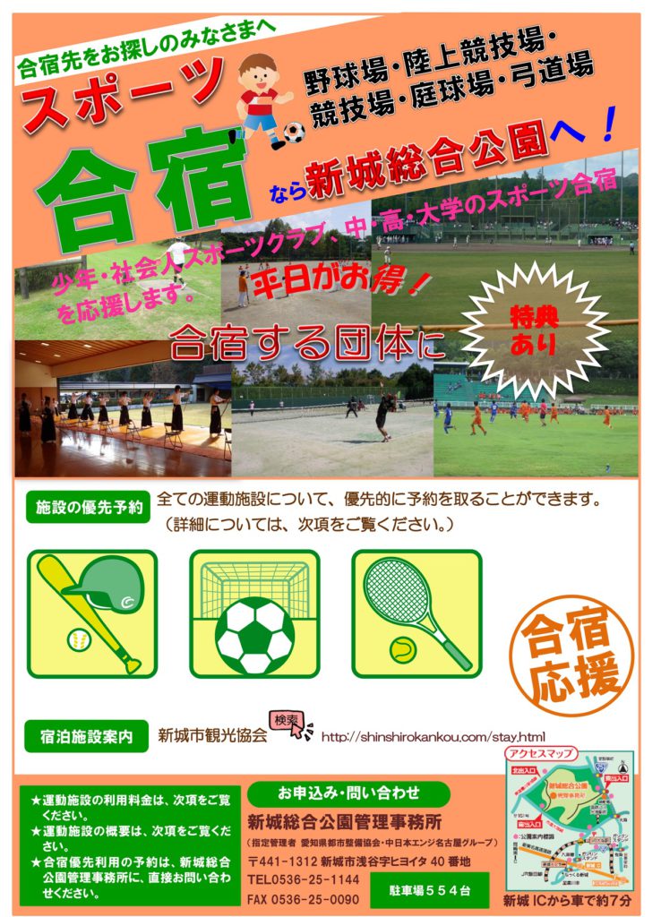 新城総合公園では、少年・社会人スポーツクラブ、中・高・大学のスポーツ合宿を応援するべく、全ての運動施設について優先予約ができるようになりました!!