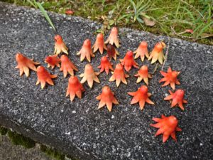 初夏には、ザクロの木の下に並んだたくさんのタコさんウインナー!