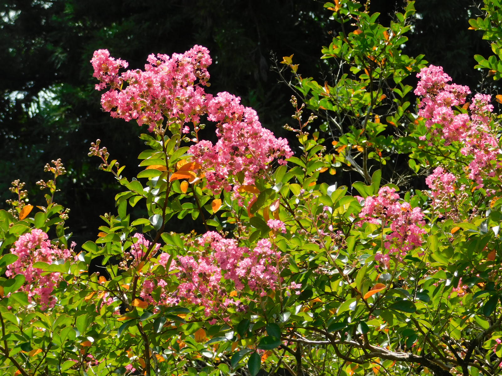 サルスベリは、陸上競技場で白色とピンク色、東出入口周辺や学習の森、