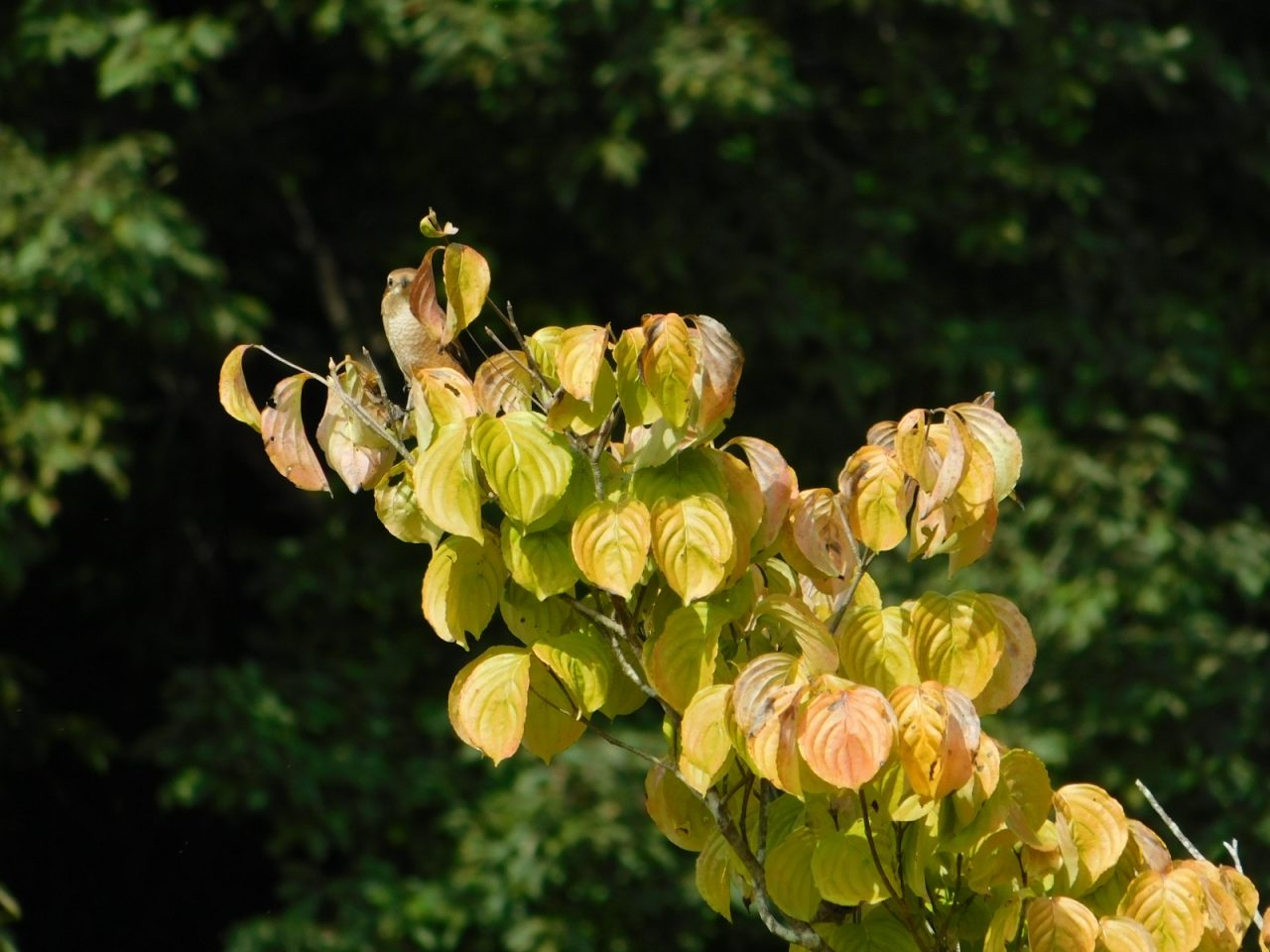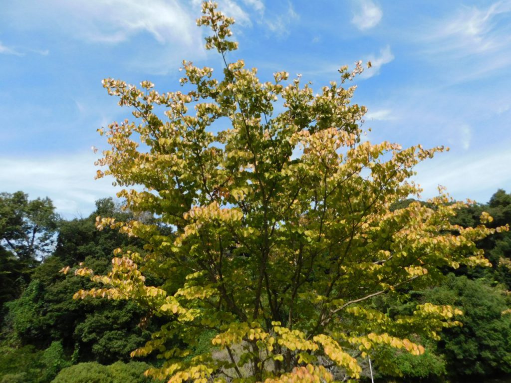 紅葉がはじまっています。 更新日 2024/10/11 ここ数日、ようやく秋らしい気候になってきましたね。 園内の木々も色づきだしています 弓道場横のハクモクレンもいい色になってきました♪ わんぱく広場のヤマボウシ 優しい色ですね。 この写真、よく見るとだれか隠れています♪