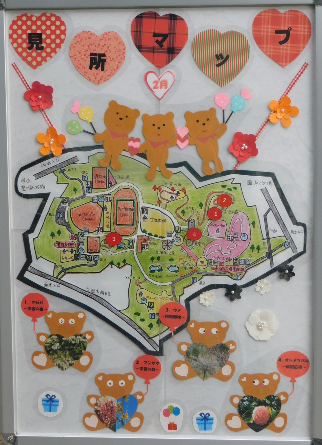 わんぱく広場管理棟前に2月の見所マップを設置しました。