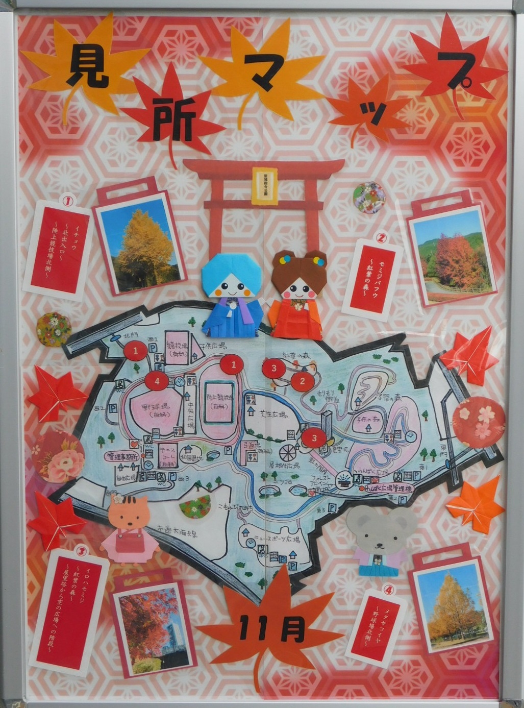 わんぱく広場管理棟前に11月の見所マップを設置しました。
