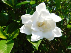 園内で咲いているのは、大きな白いバラのような八重のクチナシです。