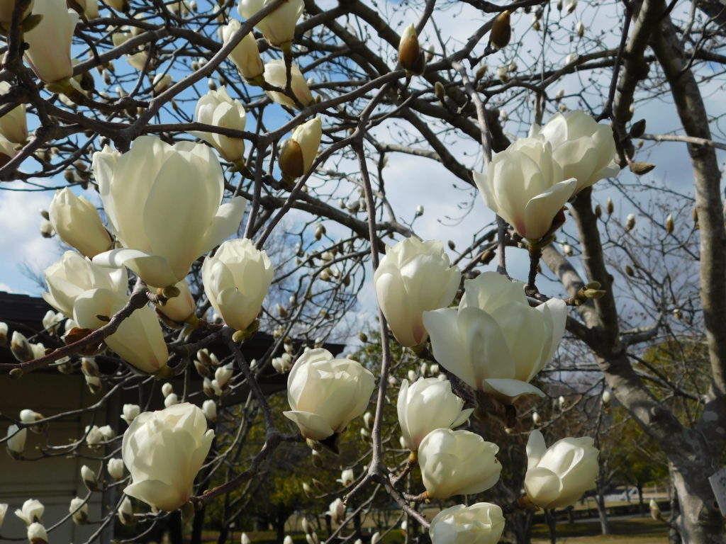 モクレン 見頃 ハクモクレン(白木蓮) シモクレン(紫木蓮) 展望塔の南側階段沿いでは白も紫も見られます。 ハクモクレンは、他にも弓道場やわんぱく広場などでも見ることができます。 花の1つ1つが大きく、1本の木に大きな花がたくさん咲いている姿は とても見ごたえがありますよ。 最終更新日 2022/05/10