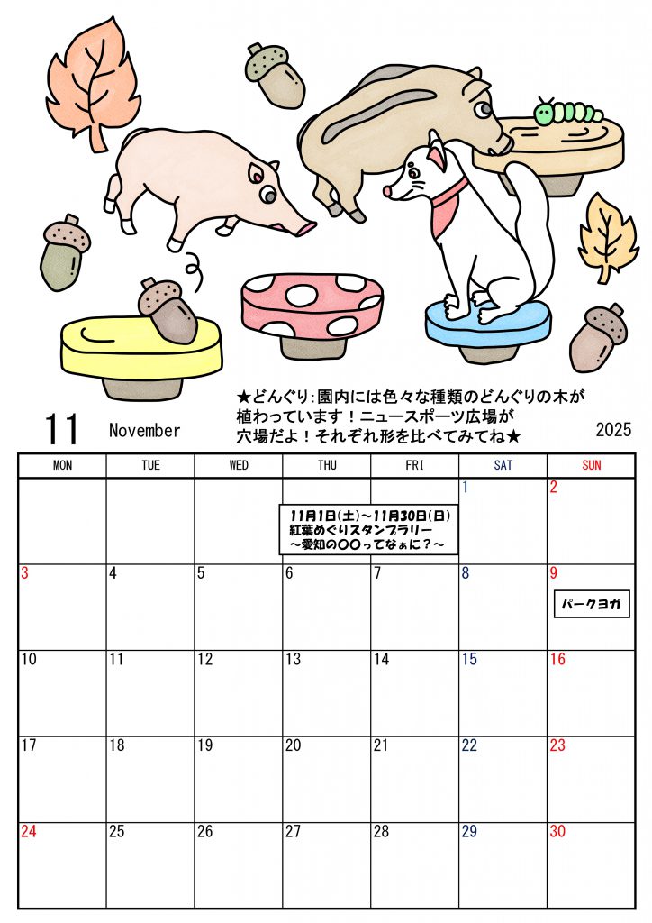 新城総合公園オリジナルの「ぬりえカレンダー」!