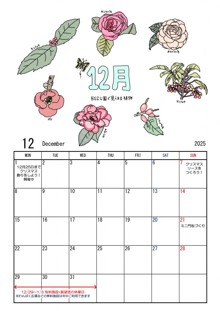 新城総合公園オリジナルの「ぬりえカレンダー」!
