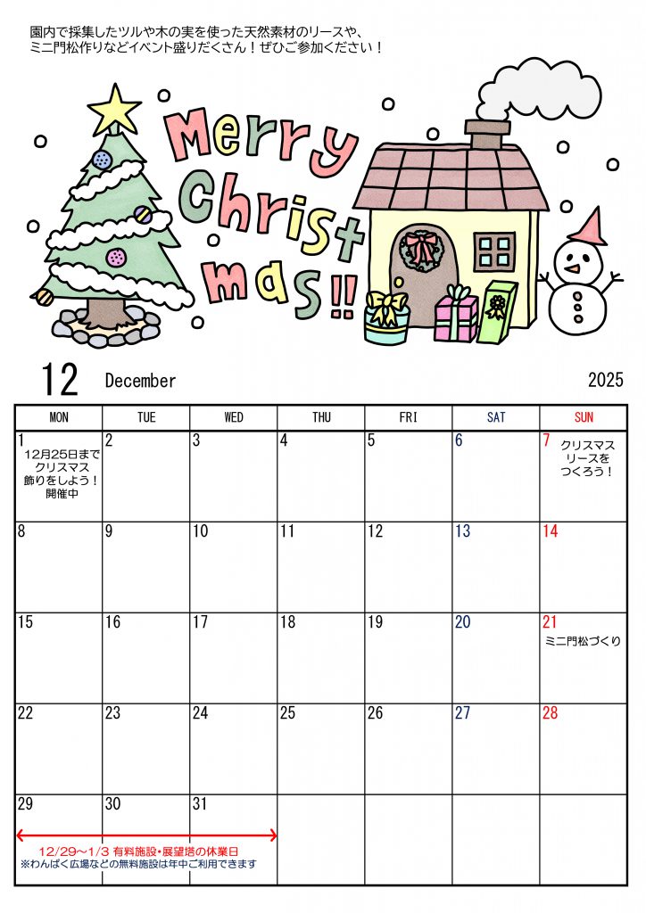 ぬりえカレンダー 12月の図案