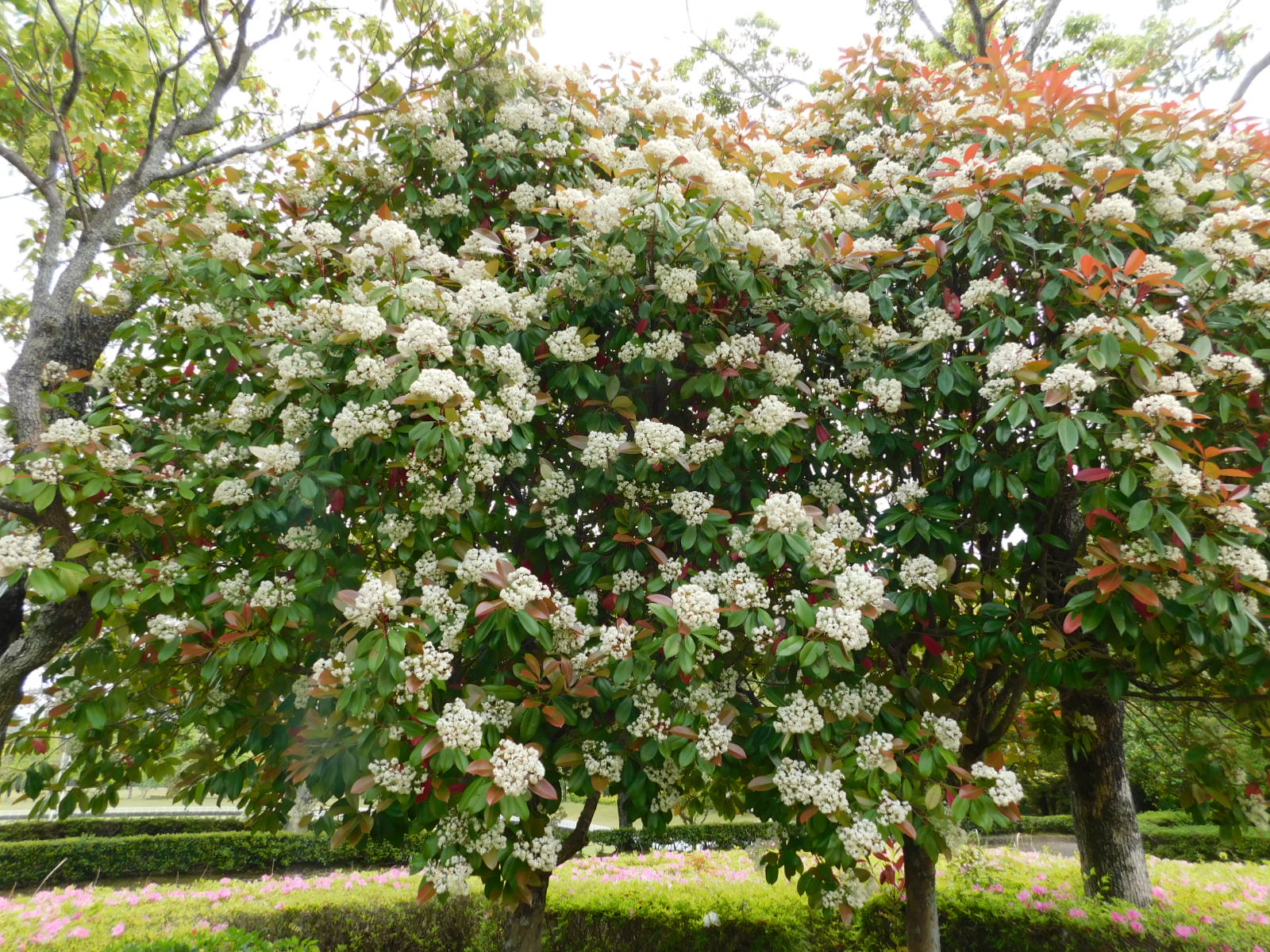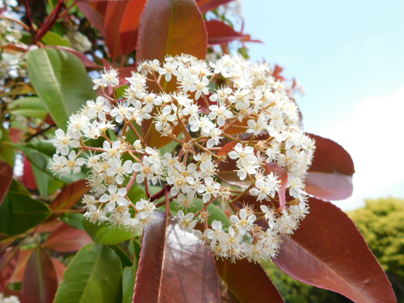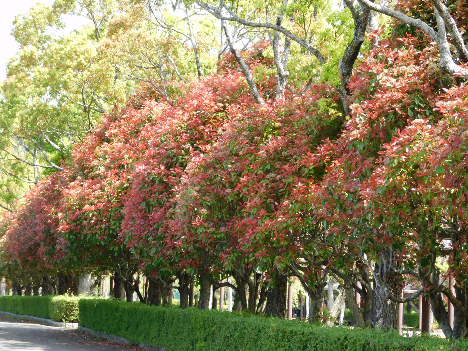 レッドロビン 見頃 この写真は4月中旬ごろの様子です。 春先に葉っぱが真っ赤になり、白い花が咲くころ葉っぱは緑色に・・・。 こちらが5月に入ってからの様子です。 どんどん様子が変化していくのでそんなところも楽しんでみてくださいね! 中央広場はじめ園内随所で見られます。 最終更新日 2021/05/06