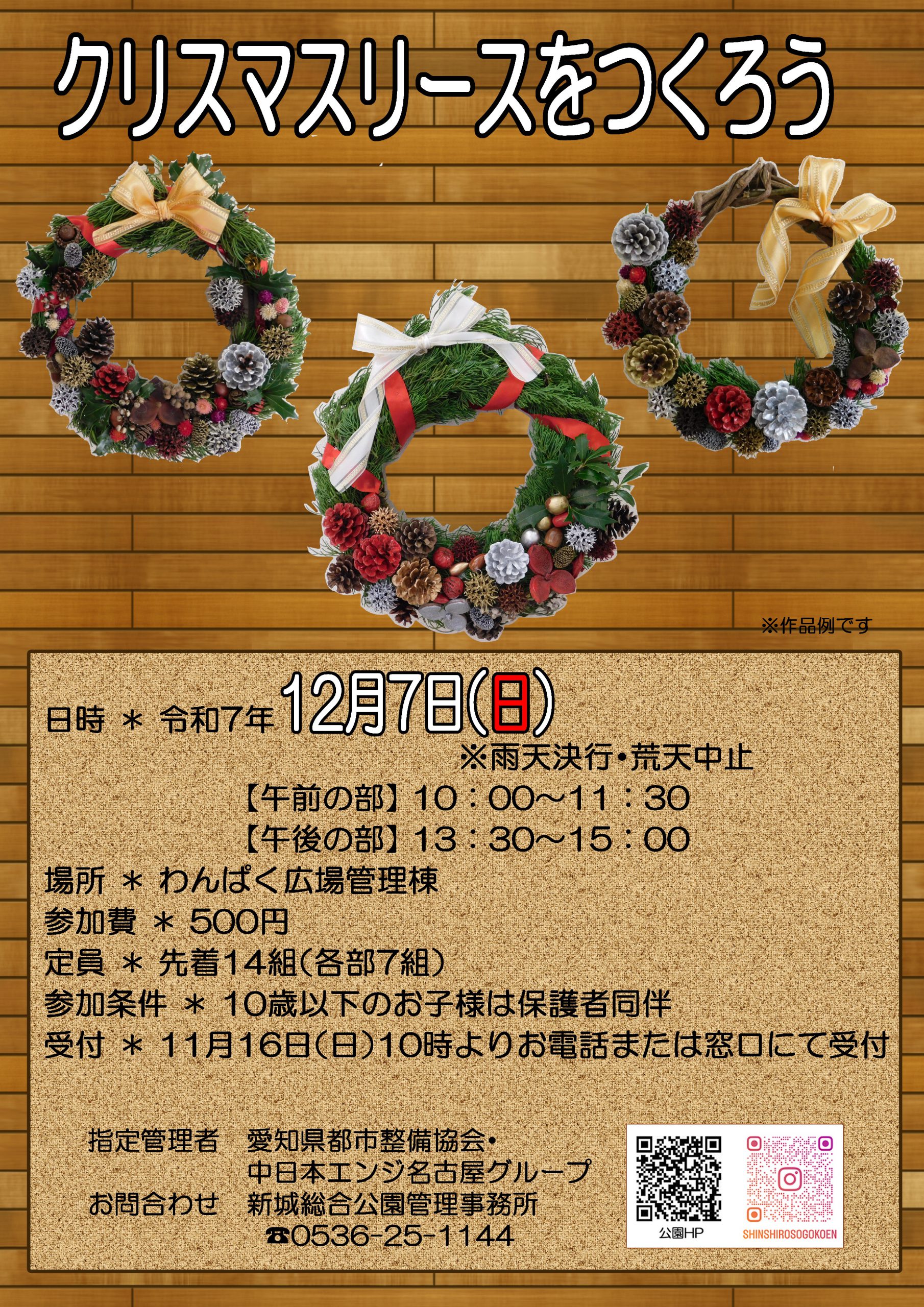 公園で採れた藁にどんぐりや木の実などを装飾し、本物のリースづくりをしませんか♪
