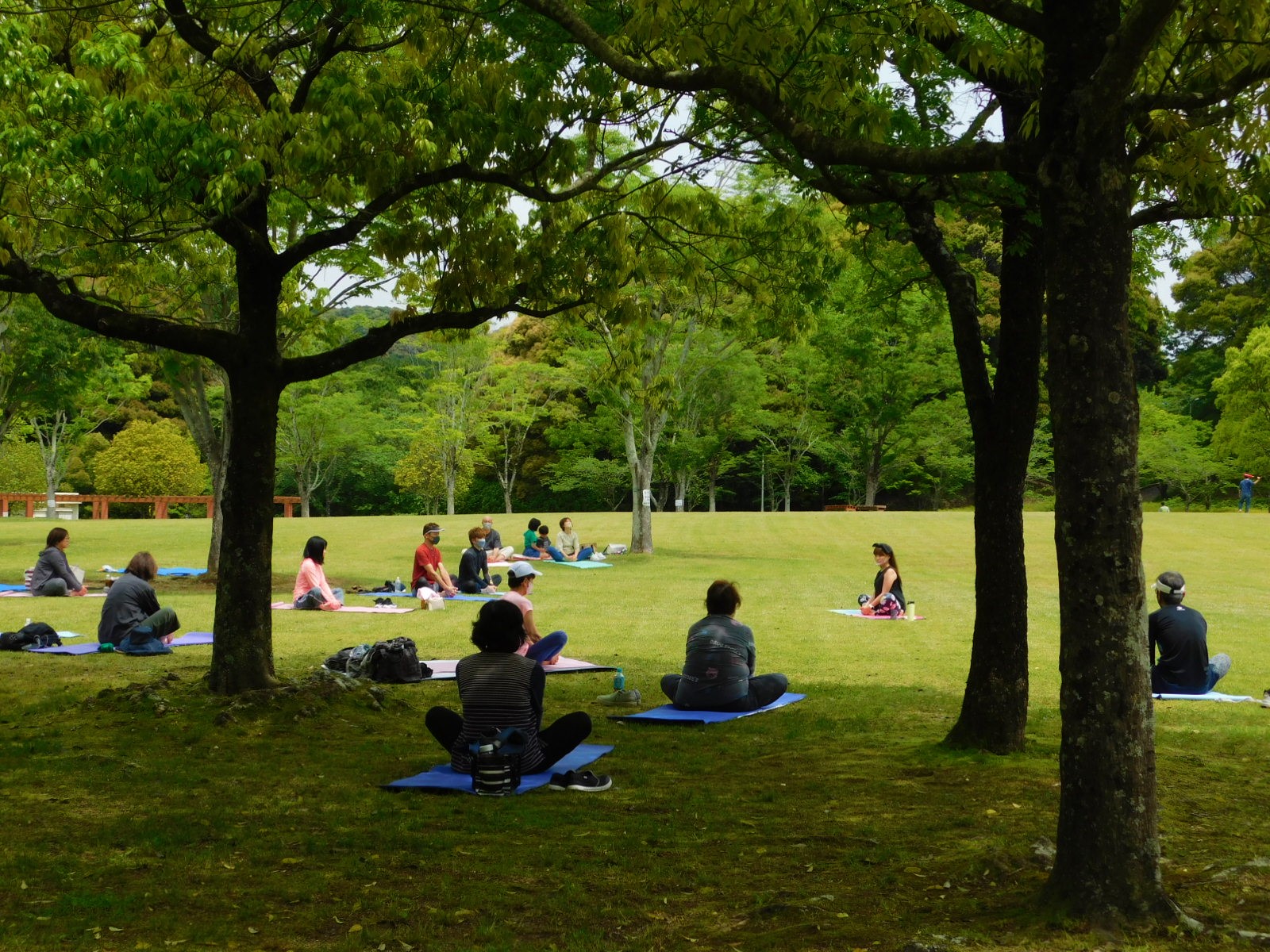 ヨガは初めて体験されるという方や、屋外でのヨガは初めてという方が多く