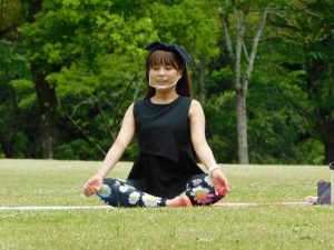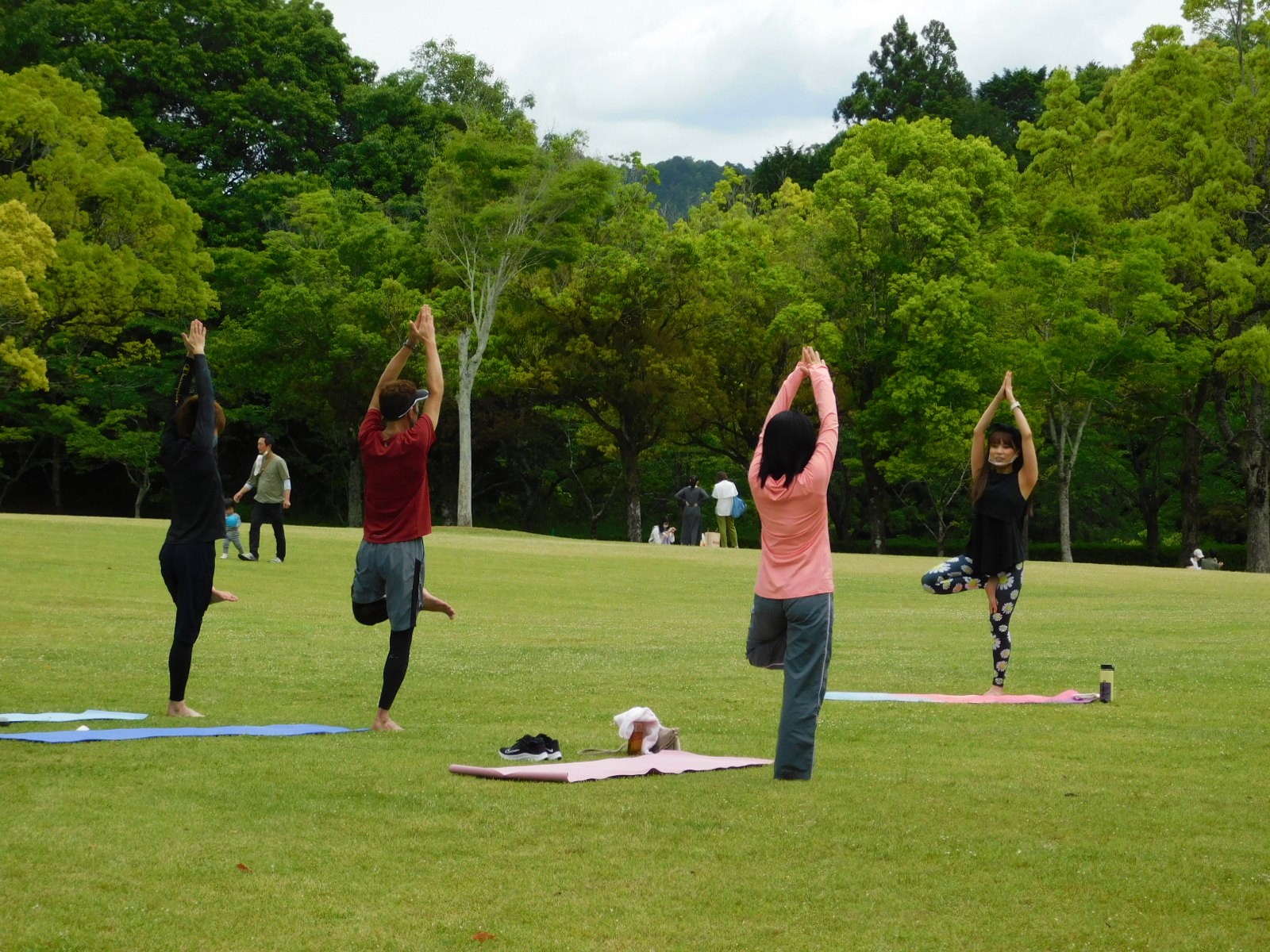 今回は無事お天気にも恵まれて、芝生広場で外ヨガを体験していただくことができました。