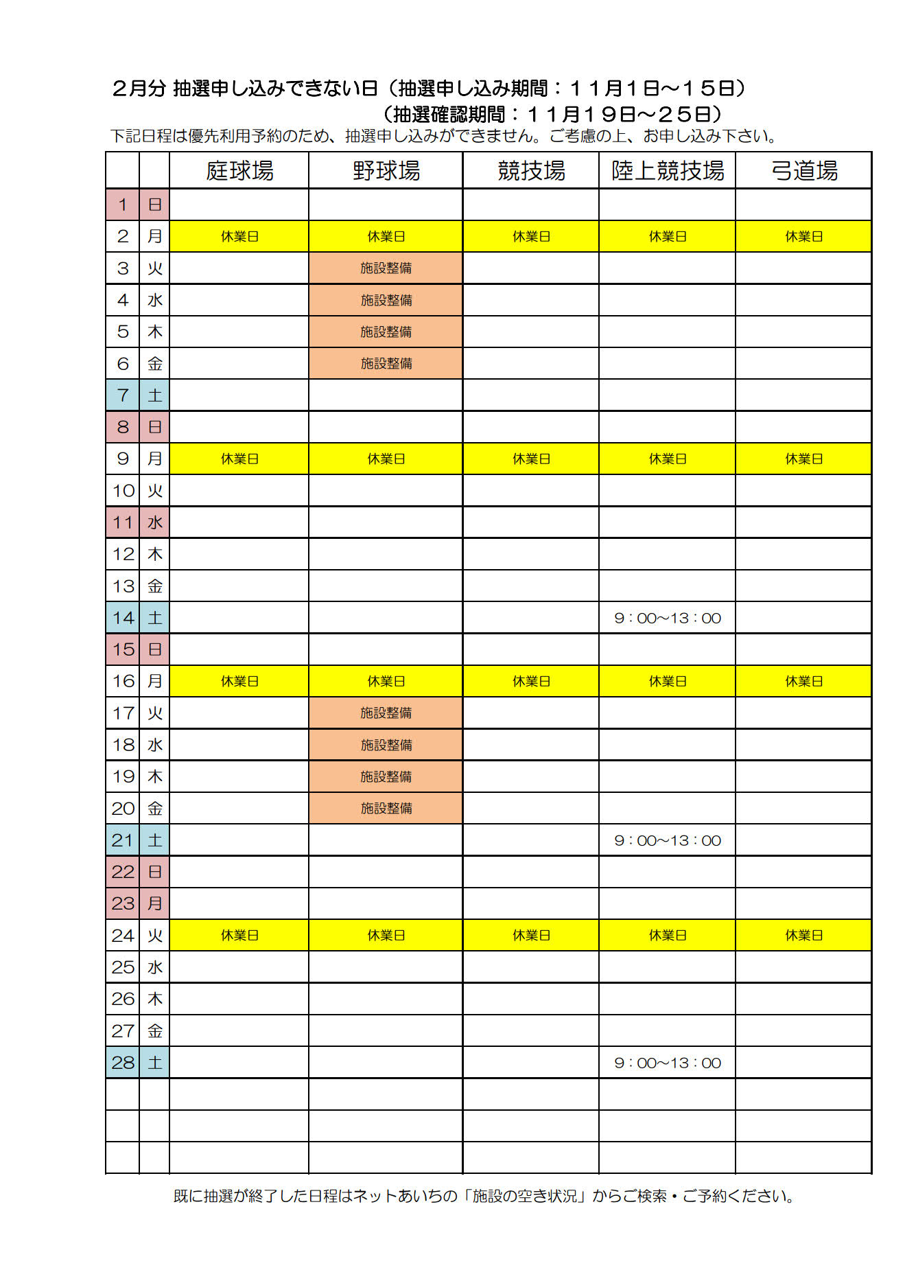 令和8年2月分抽選申込できない日について