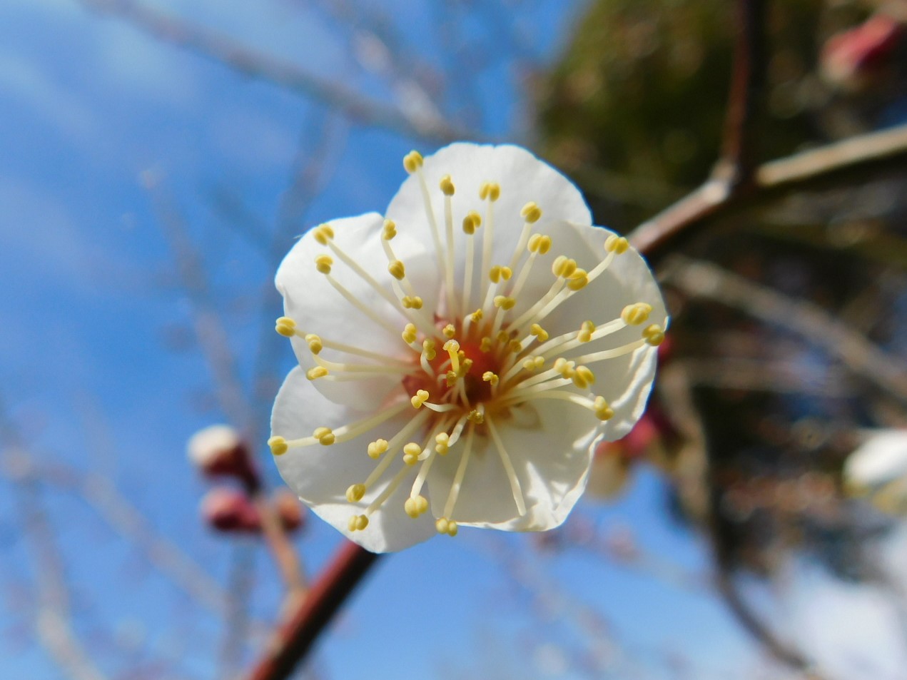ウメの花に似ていますが、ウメよりボリュームのある花です。