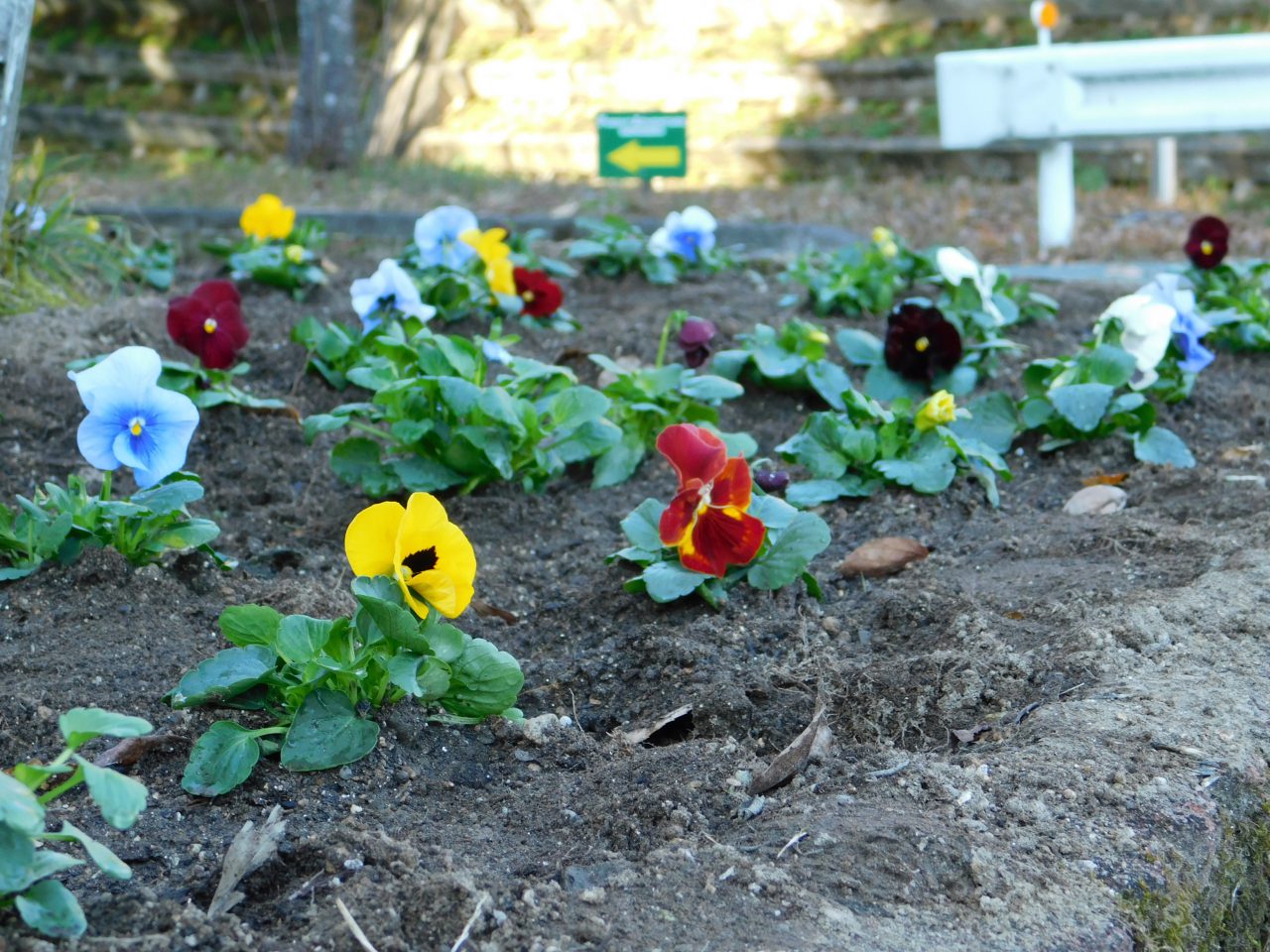 東出入口の花壇のご紹介♪ 更新日 2023/12/06 東側駐車場の出入口にある花壇にお花を植えました???? 色とりどりのパンジーです✨ 鮮やかな花の少ない冬にパンジーで彩りを感じてもらえたらと思います♪ わんぱく広場へお越しの際はぜひご覧ください(^^