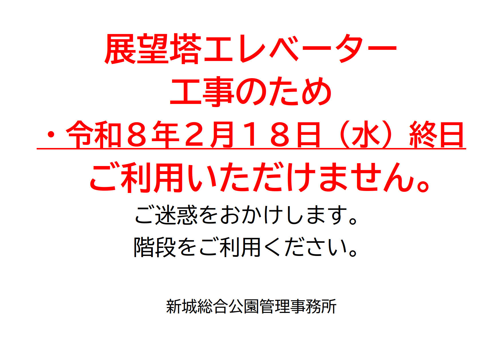 2/18 展望塔エレベーター工事に伴う使用禁止について