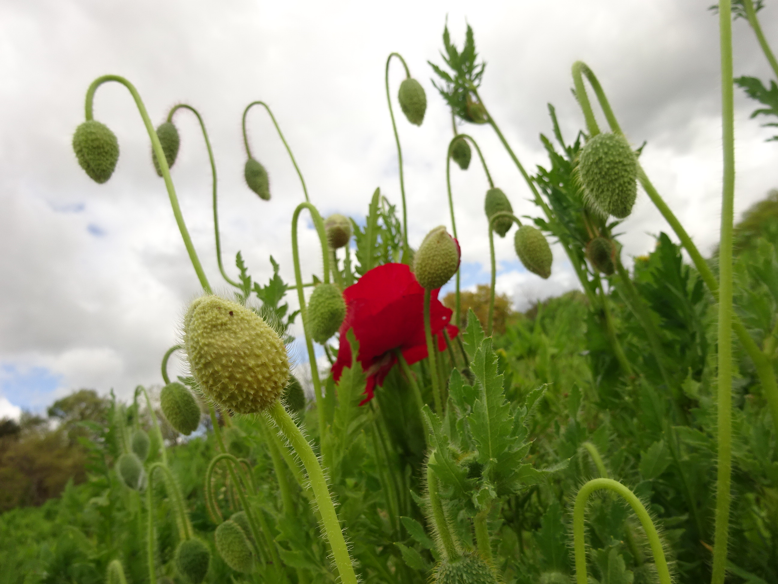 こちらはポピーの花弁がすべて散ってしまった後の様子。