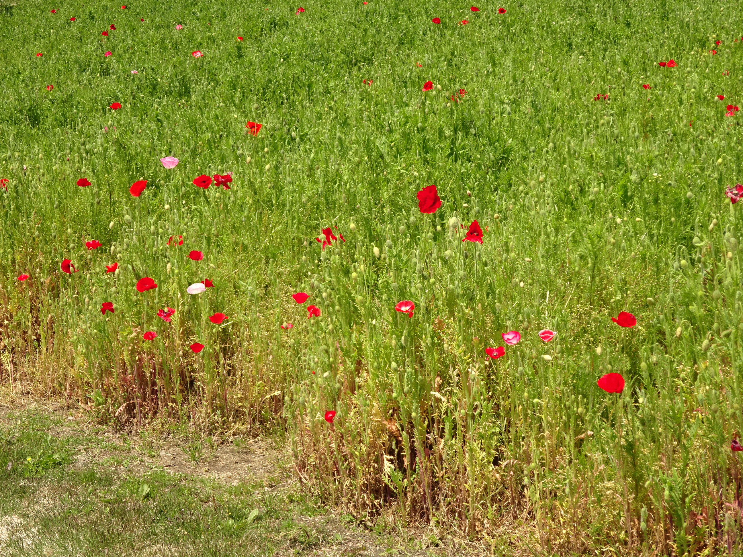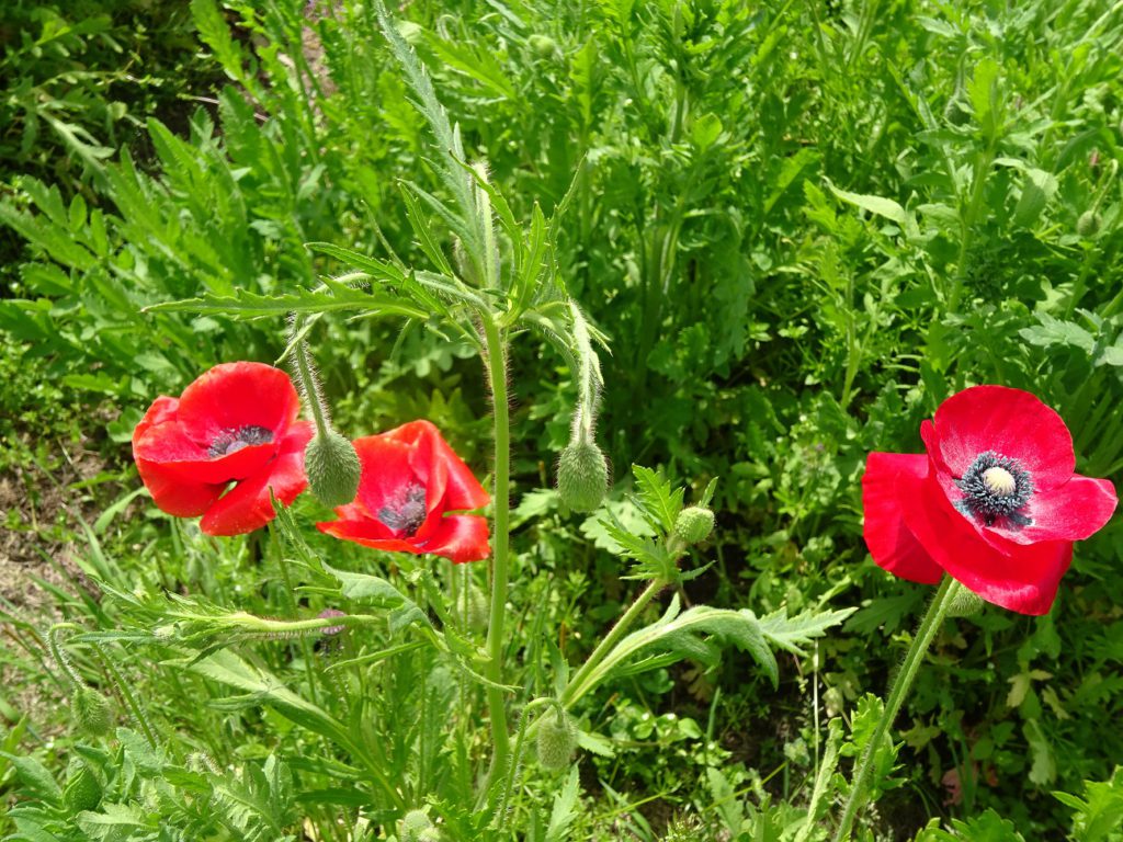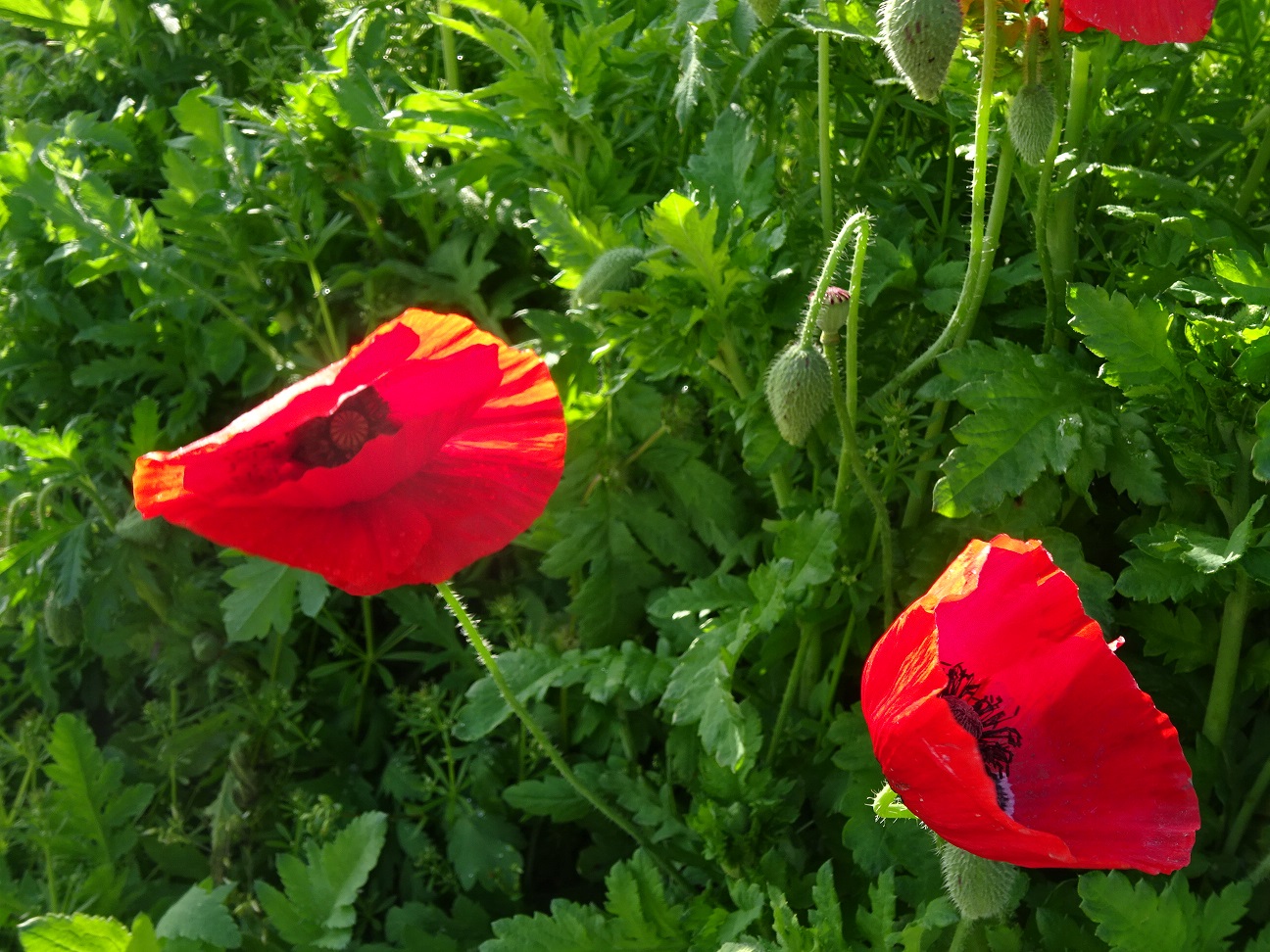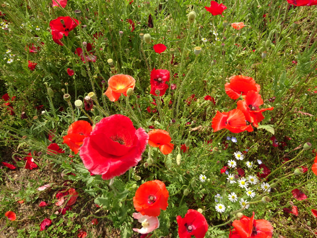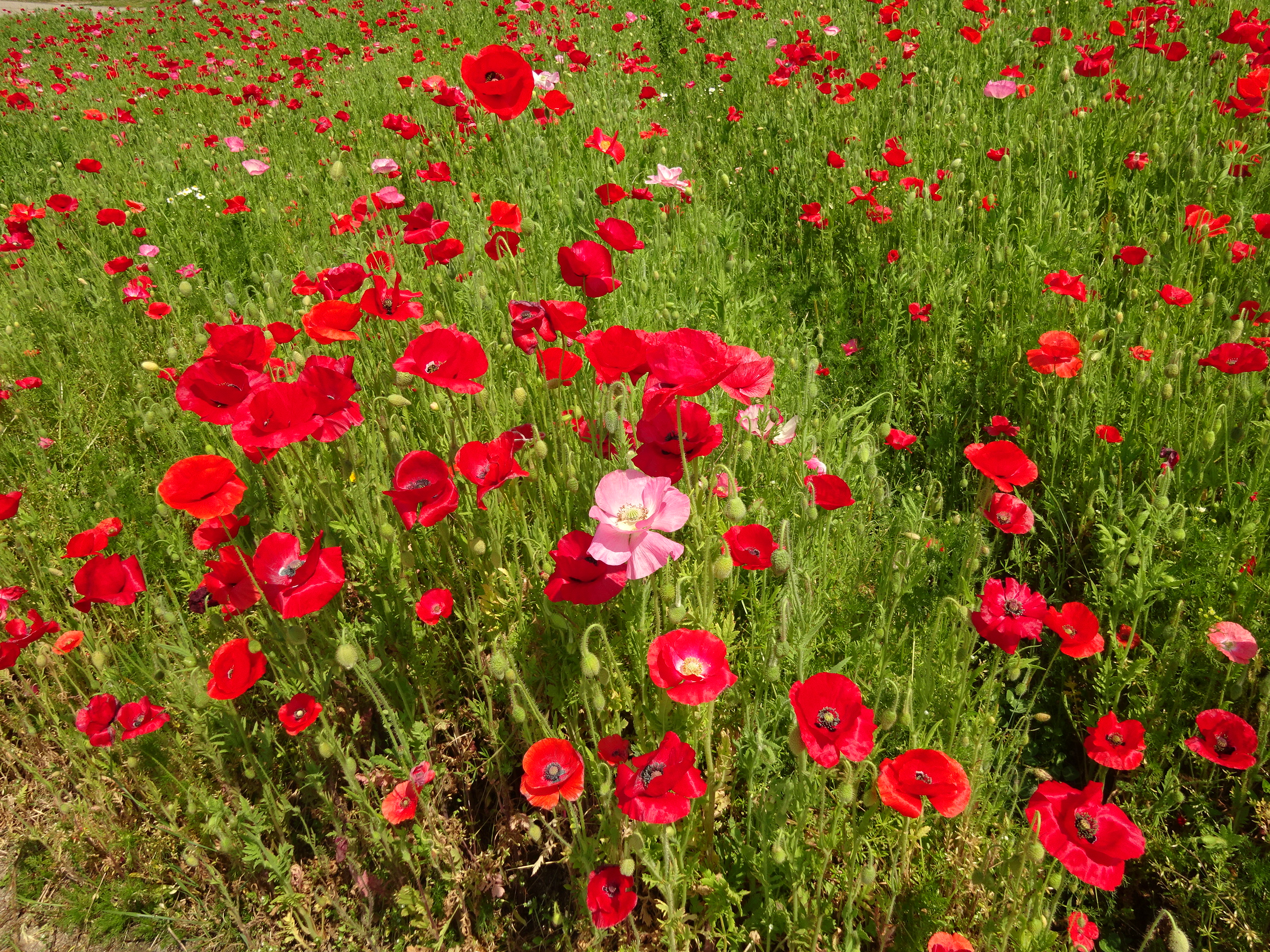 ポピーたちも満開。真っ赤な絨毯になってます。