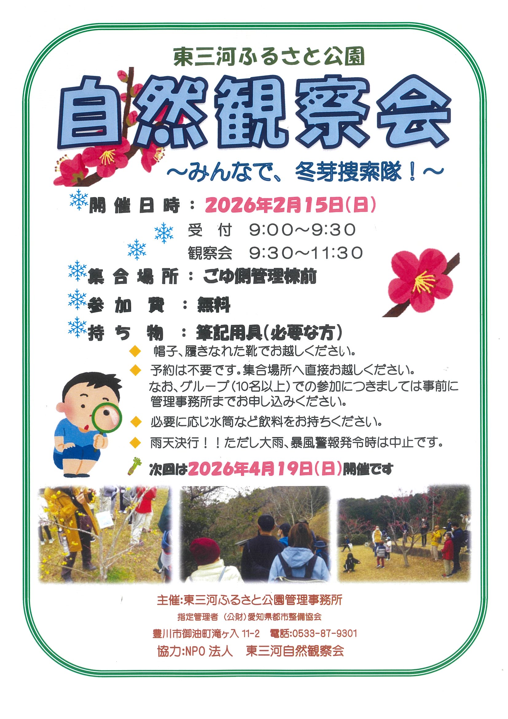 虫や樹木、野鳥などいろいろなお話が聞けますよ♪ 皆さんのご参加をお待ちしております!!