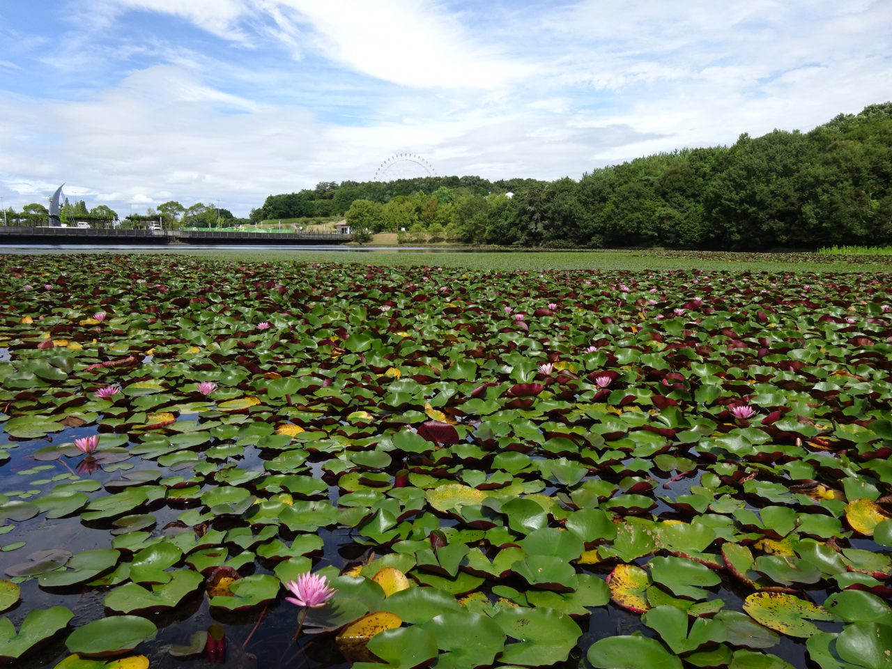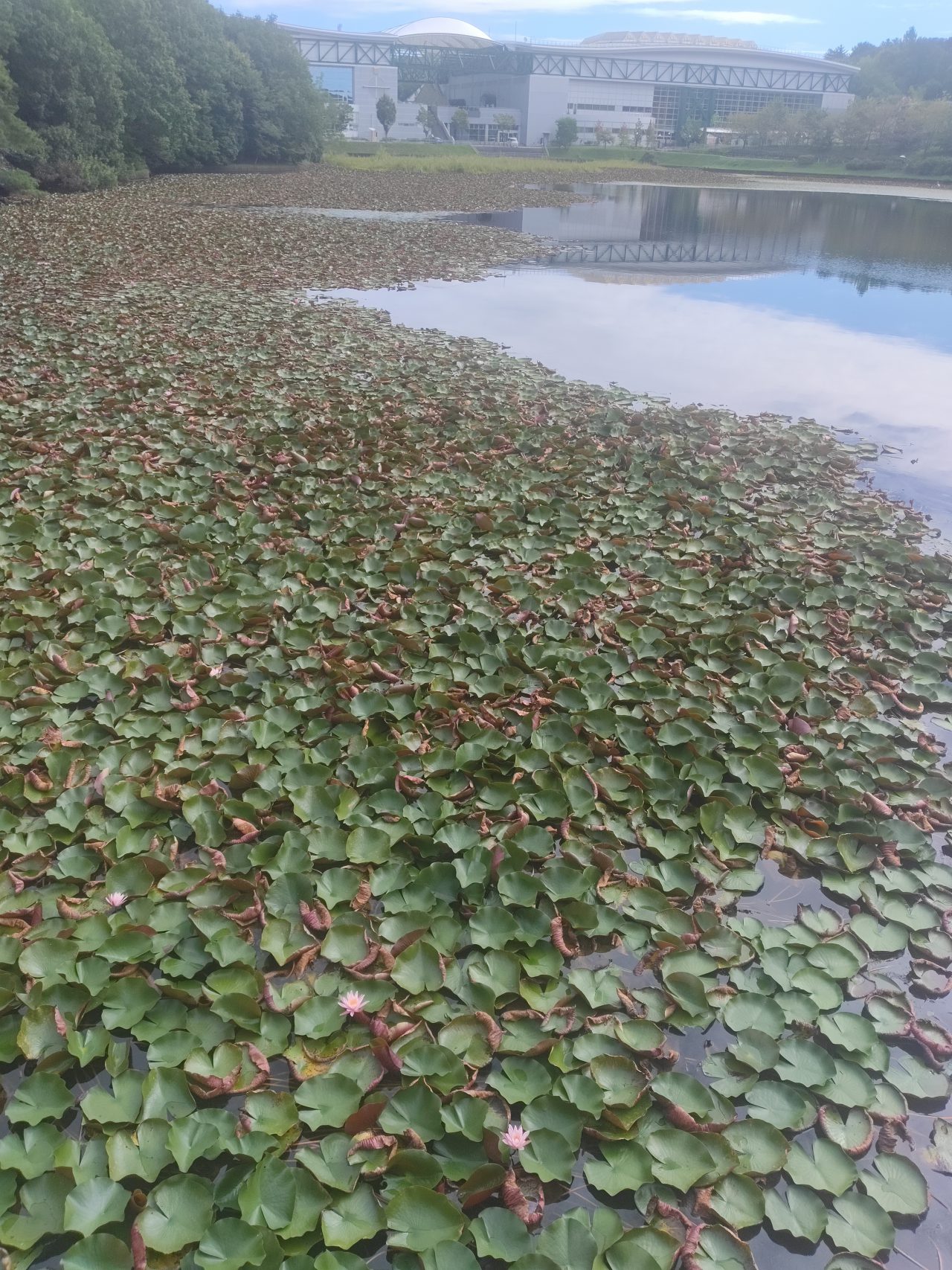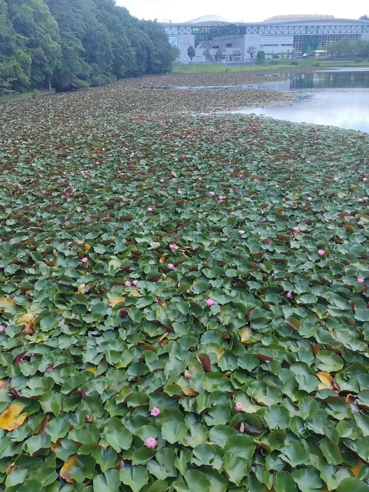 近寄って花を眺めることができないのが残念ですが、池に広がるスイレンはなかなかの絶景ですよ。