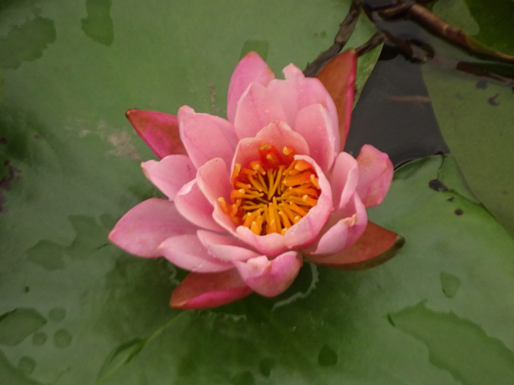 こいの池の「スイレン」です。週末の大雨の影響でしょうか、葉の上が汚れていますが、花はきれいに咲いています。