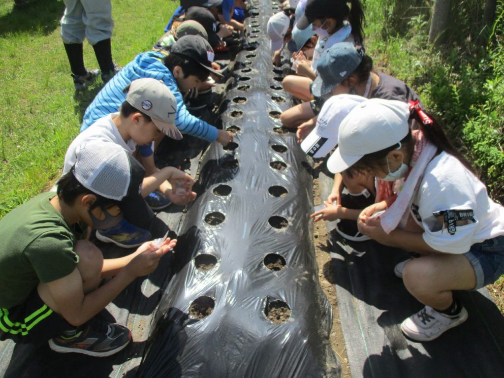 職員・ボランティアが出向き、1,2年生の皆さんと藍の種取り体験をしていただきました。