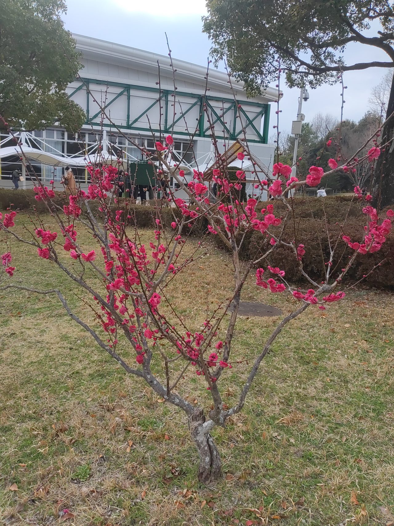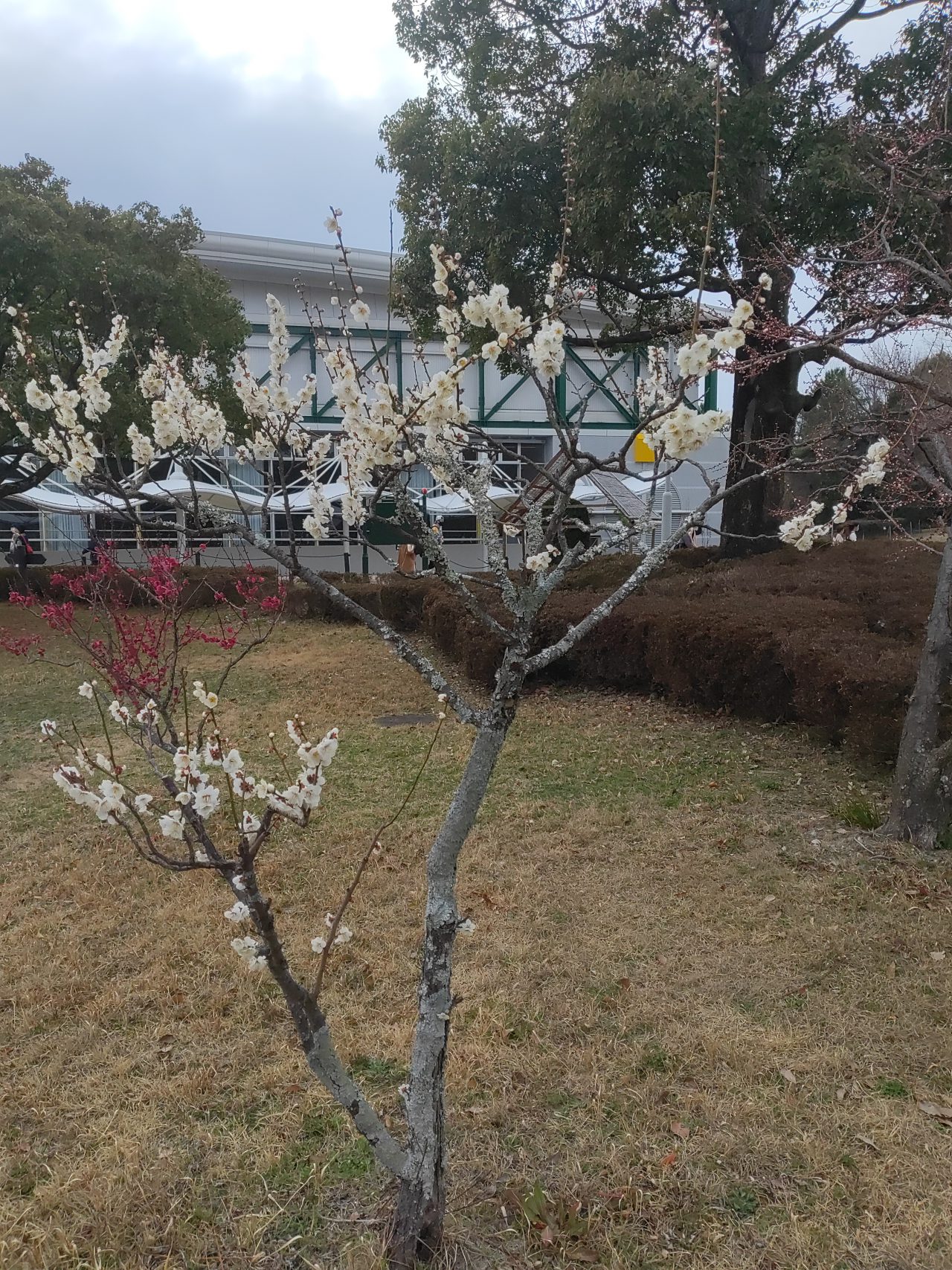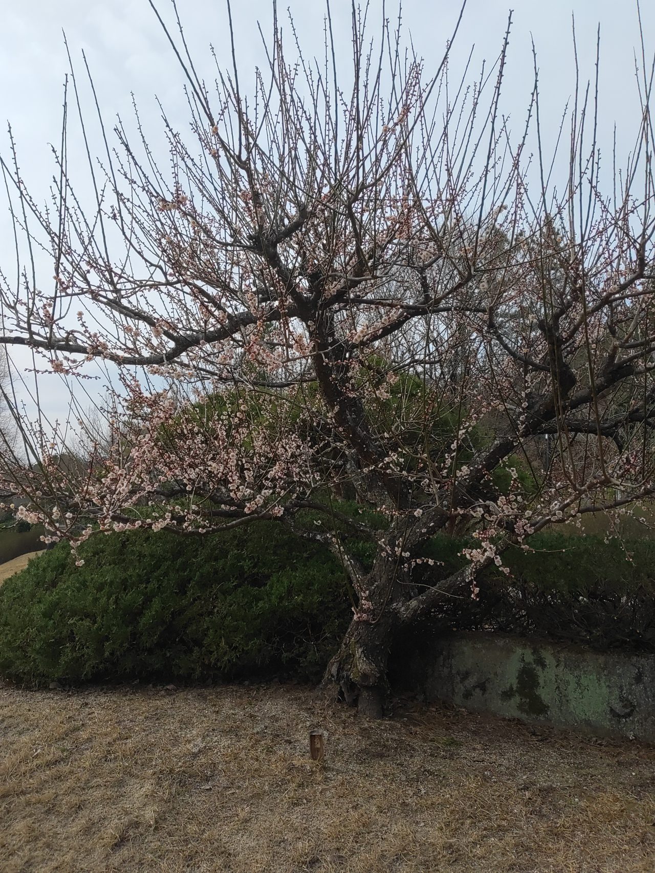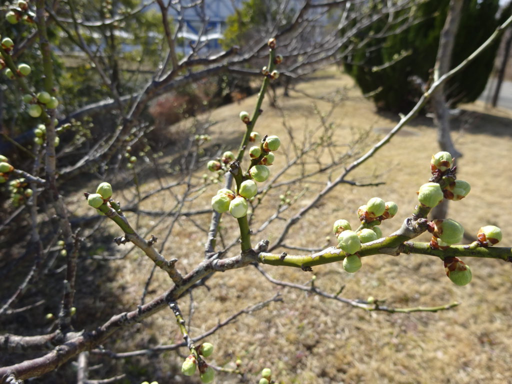 園内のウメはまだ開花していませんでしたが、新しく植樹したウメ達は既に開花しているものもちらほら…。