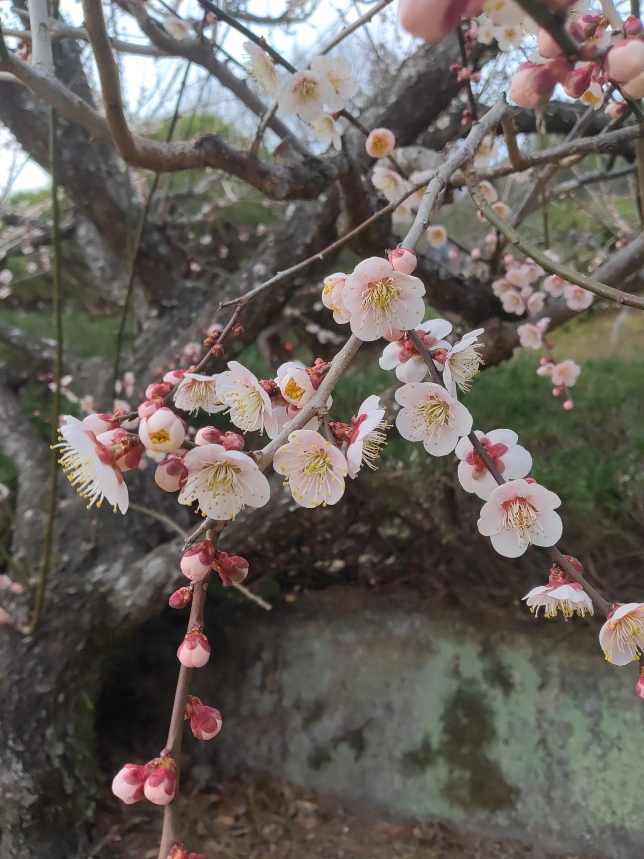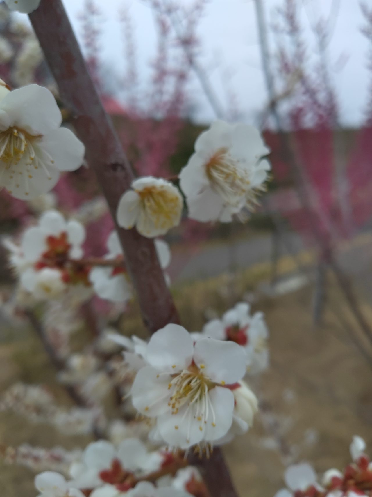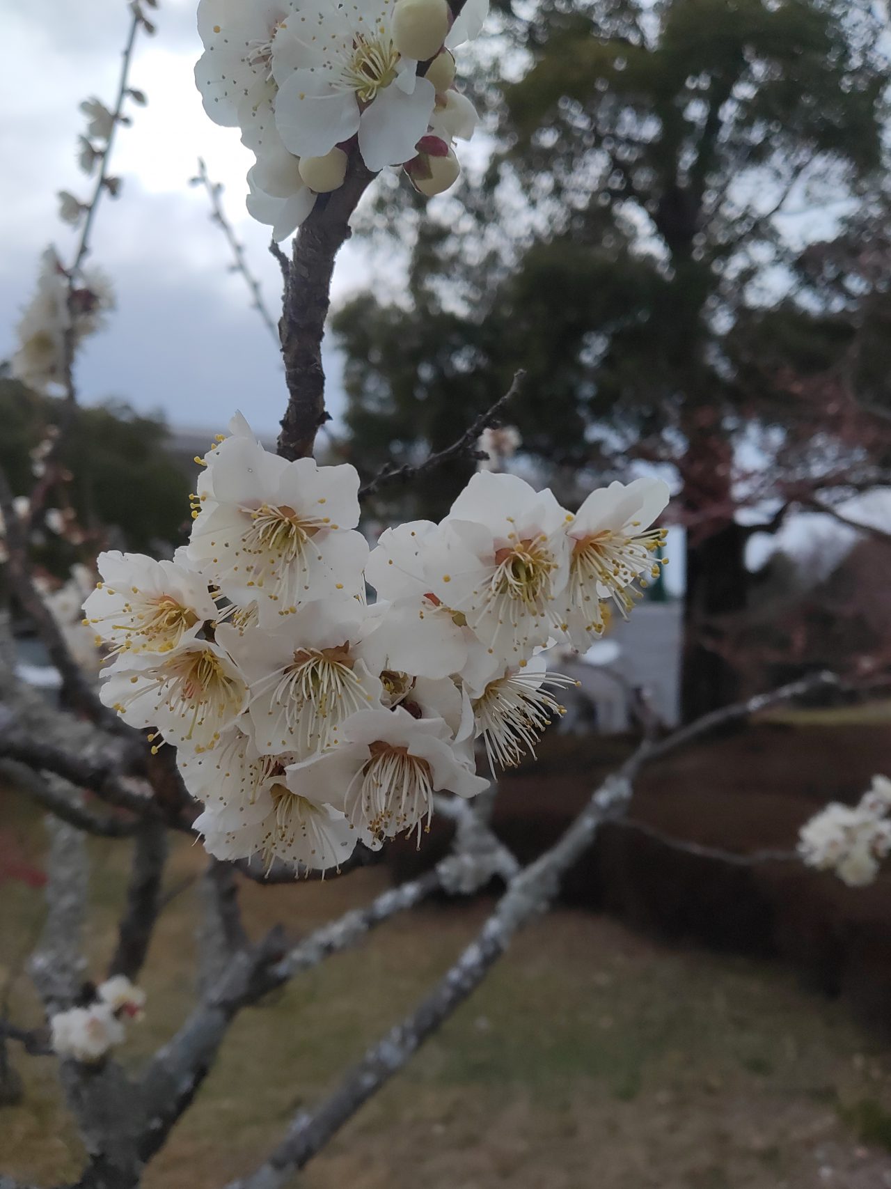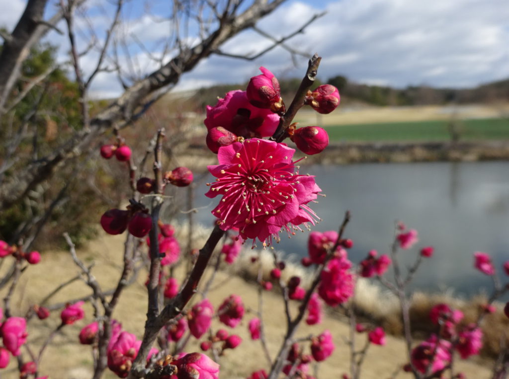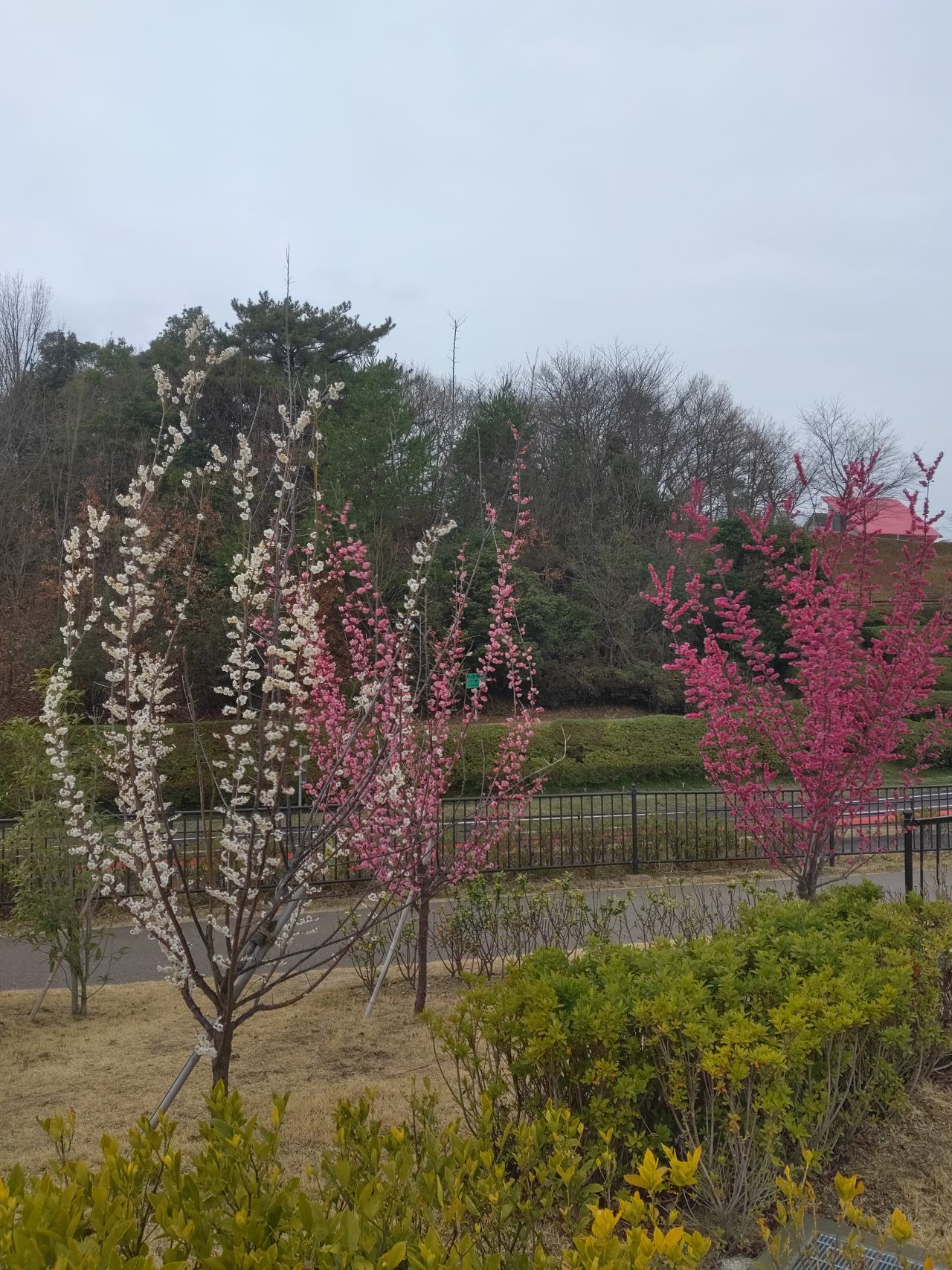 園内のウメはまだ開花していませんでしたが、新しく植樹したウメ達は既に開花しているものもちらほら…。