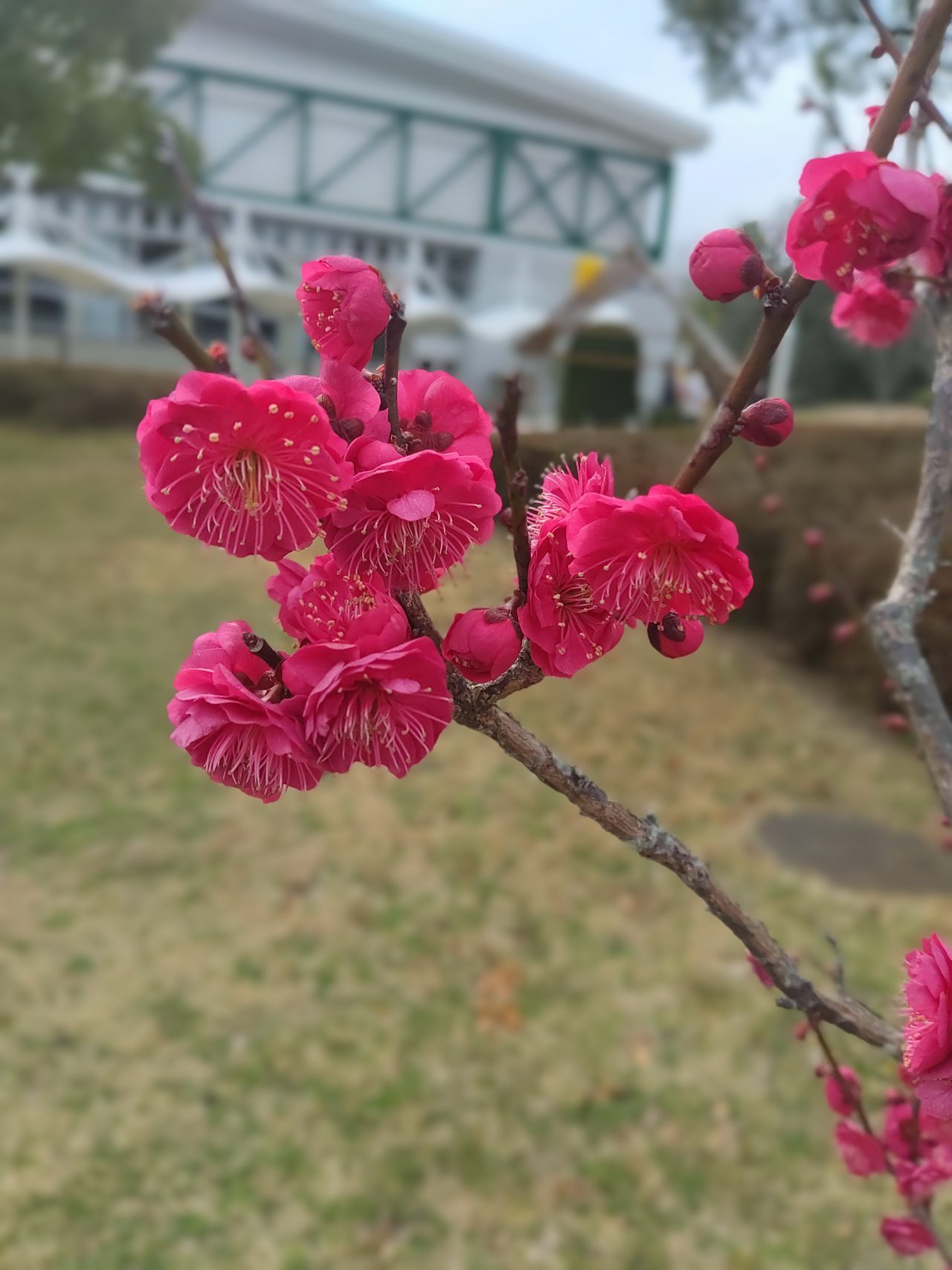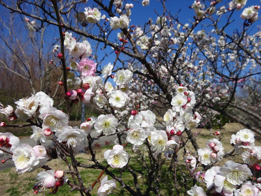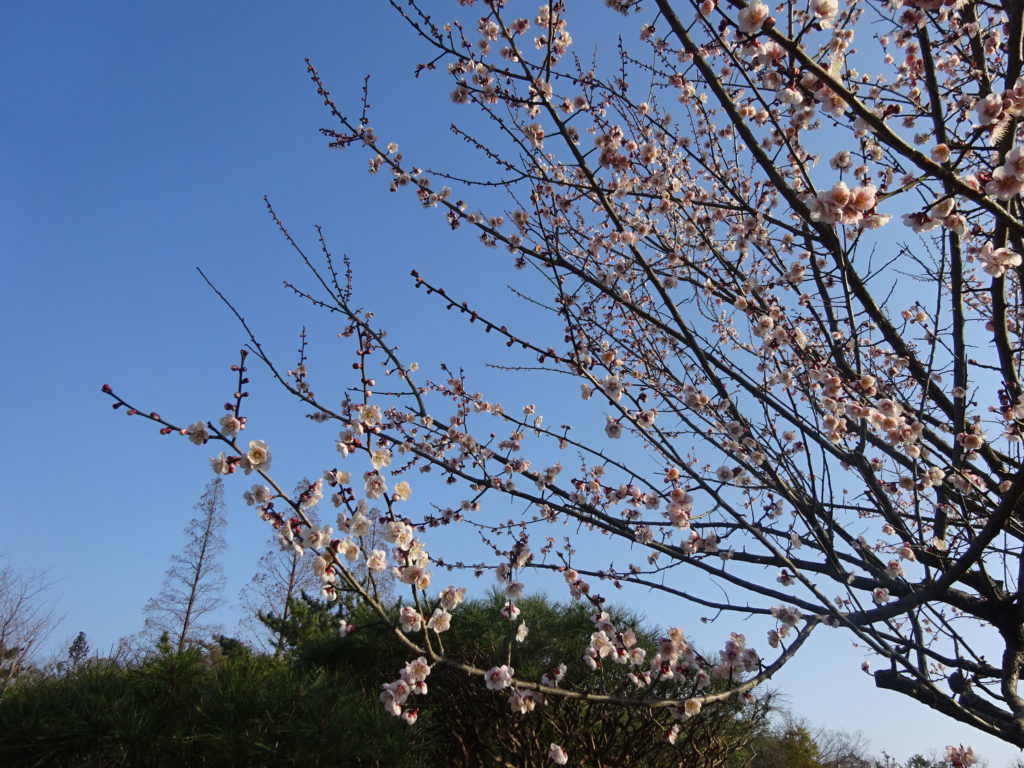 ぽかぽか陽気が続いたせいか、大芝生広場近くのウメもずいぶん咲き揃ってきました。