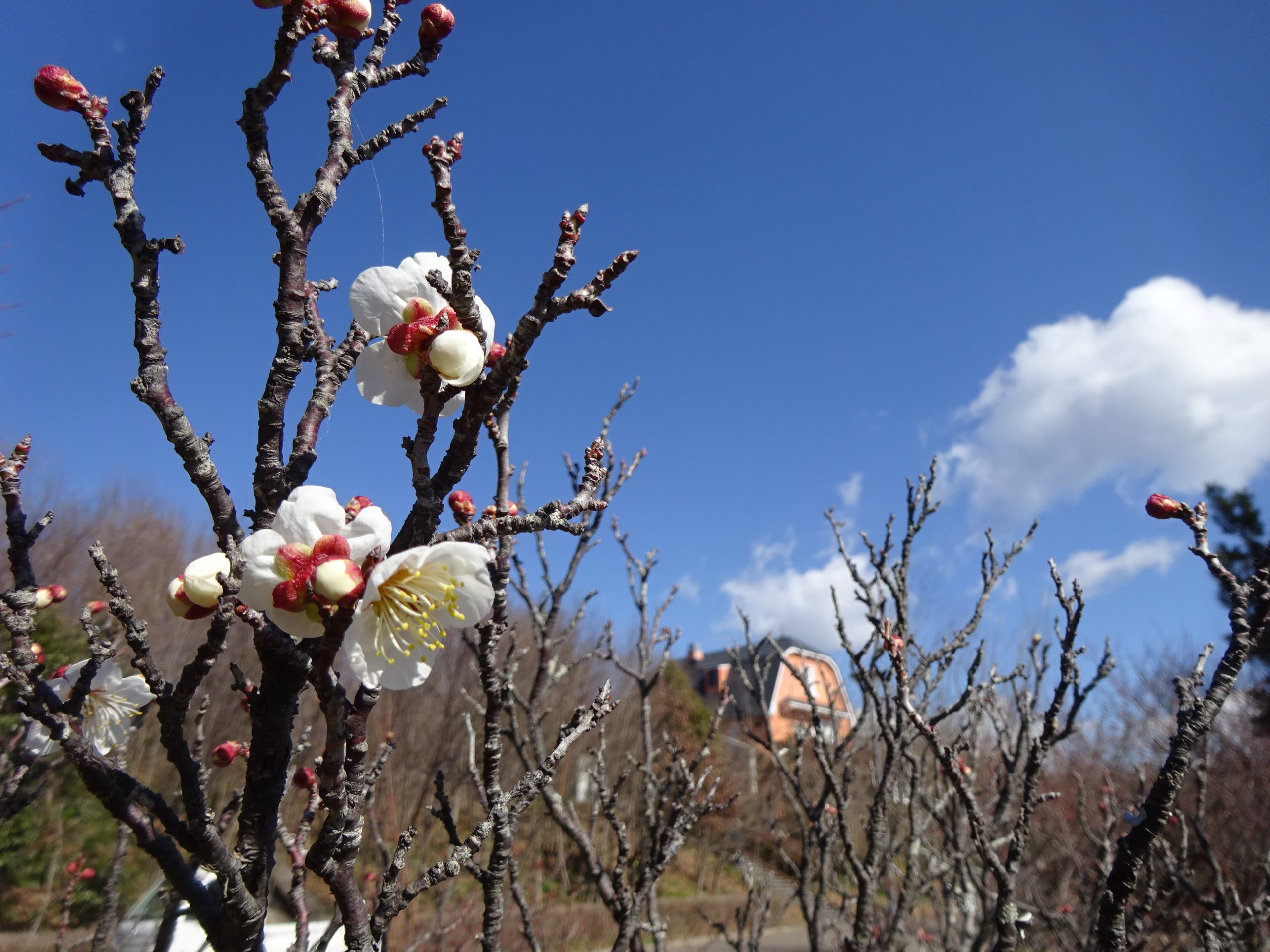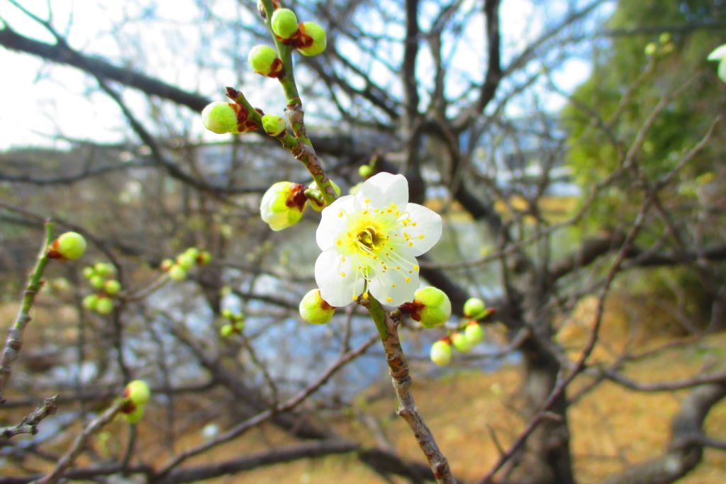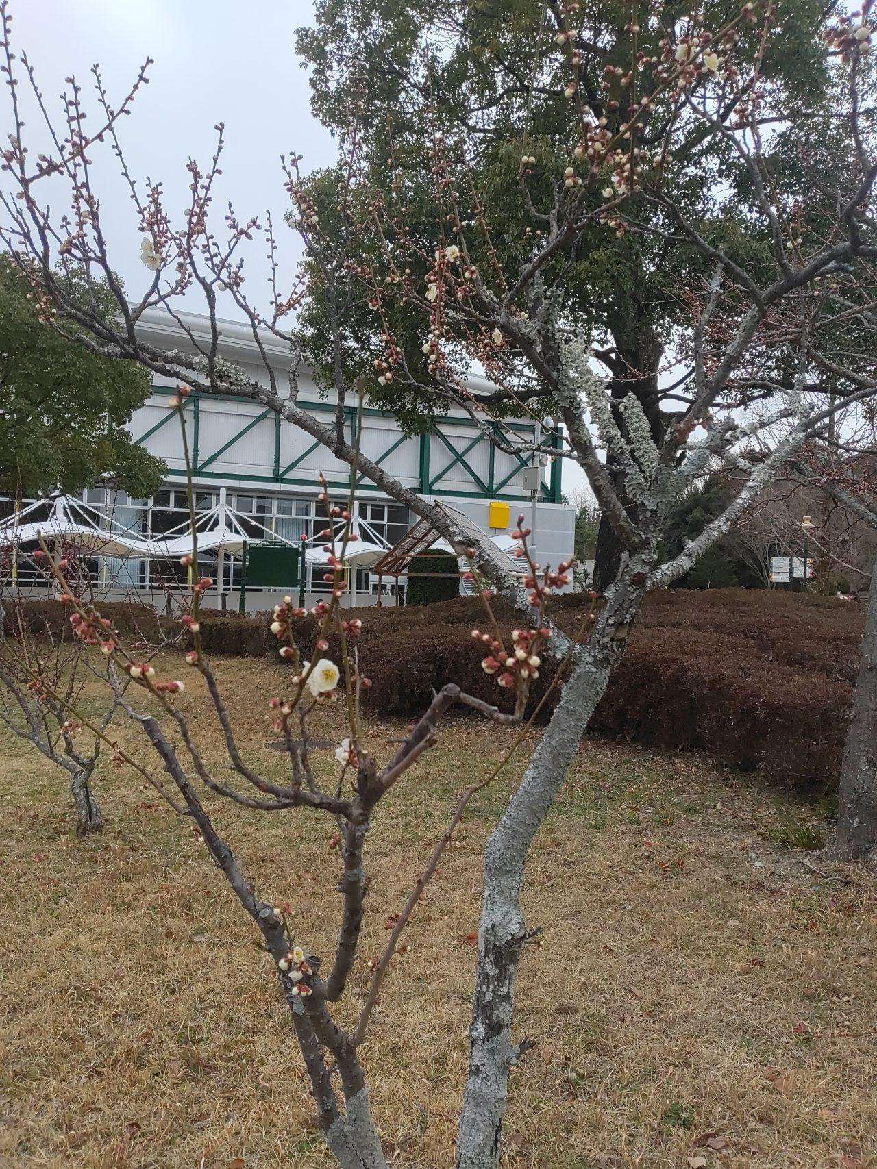 青春の丘付近にてウメの花が咲き始め満開が楽しみですね♪