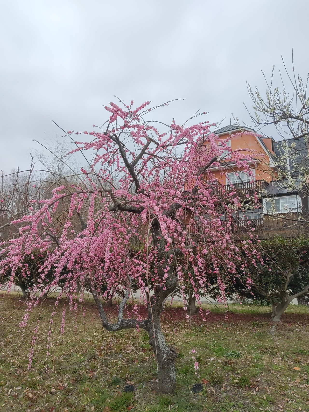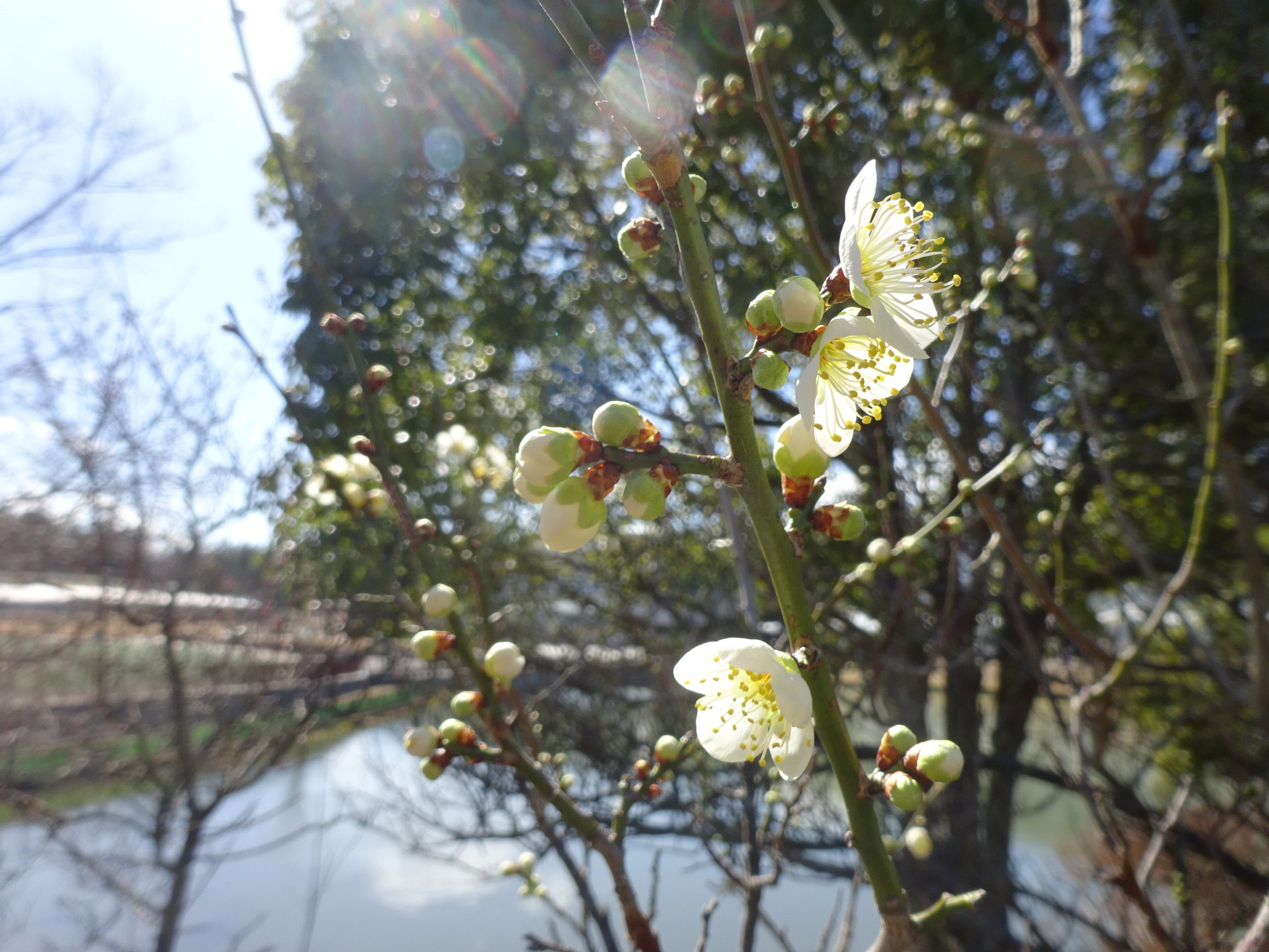 はす池脇にある梅の木、他の木もちらほら咲き始めました。