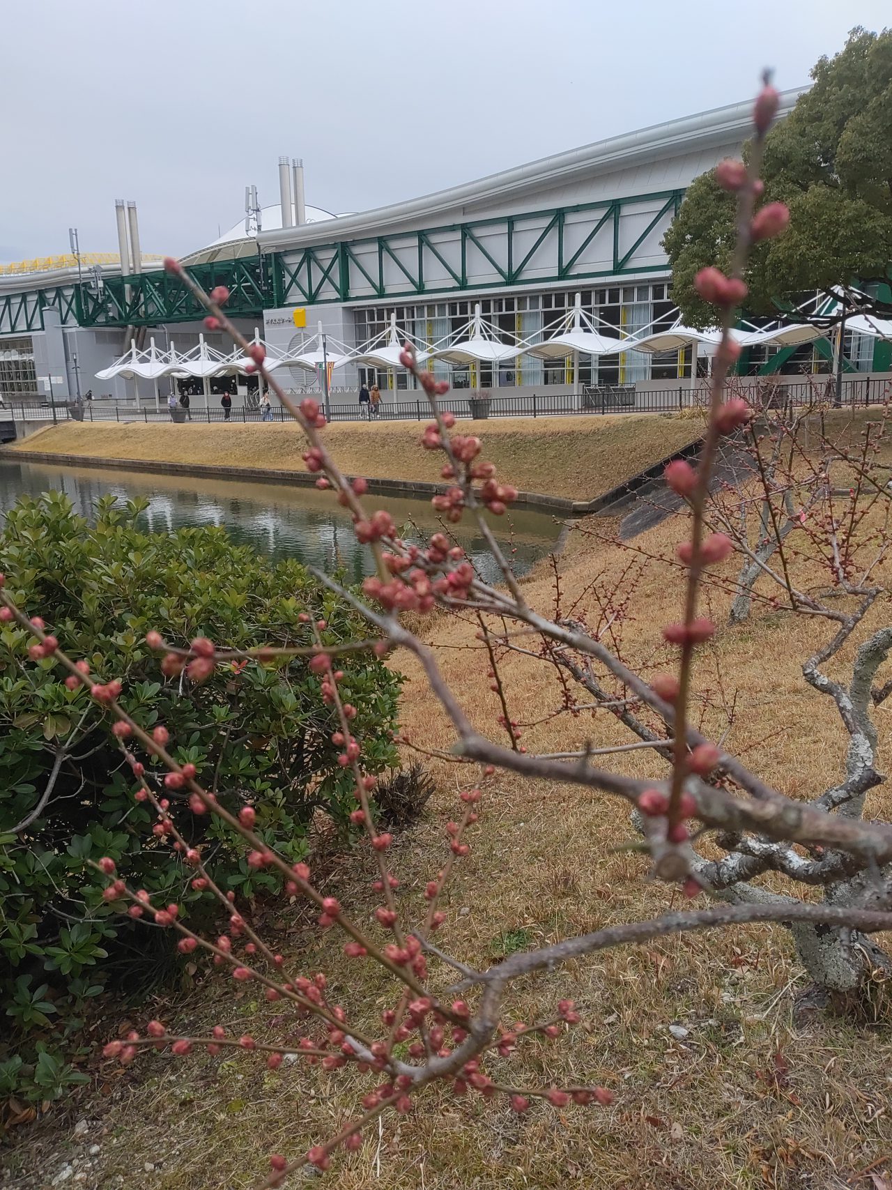 モリコロパークもそろそろ?と思い、スケート場近くに数本あるウメの様子を見に出かけてみました。