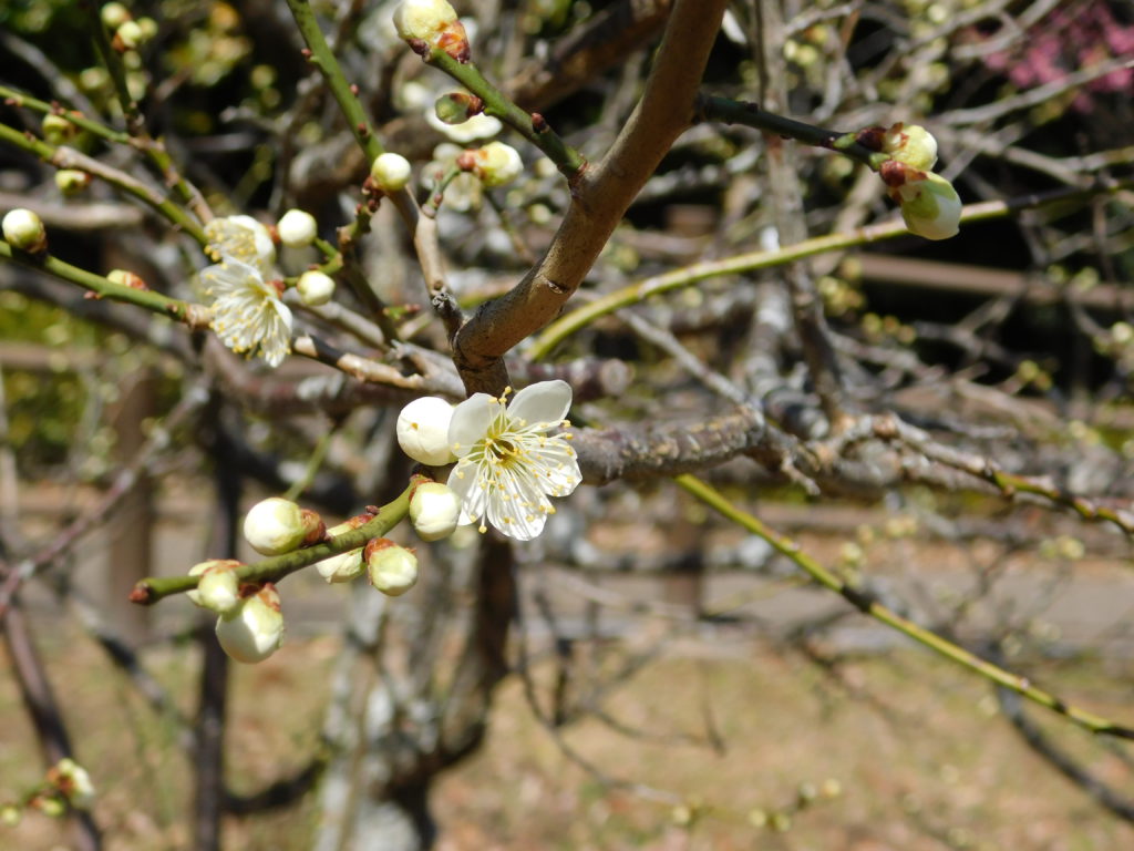 この暖かさのおかげで、和風園地のウメの花がどんどん咲き始めました❁