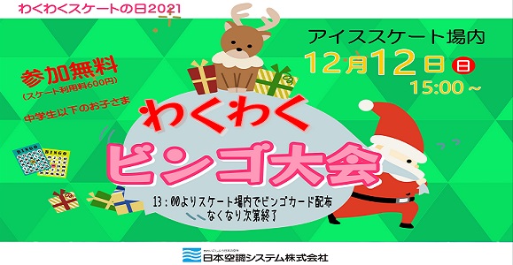 ビンゴカード配布時間:12月12日(日)13:00~なくなり次第終了