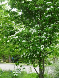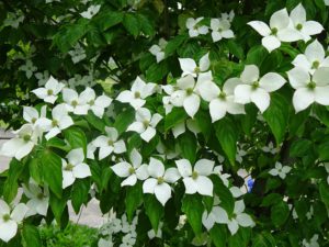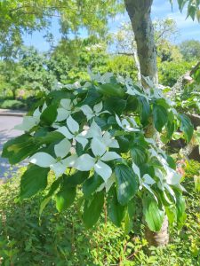ふと上を見上げてみるとヤマボウシの花が咲いているかもしれませんよ。
